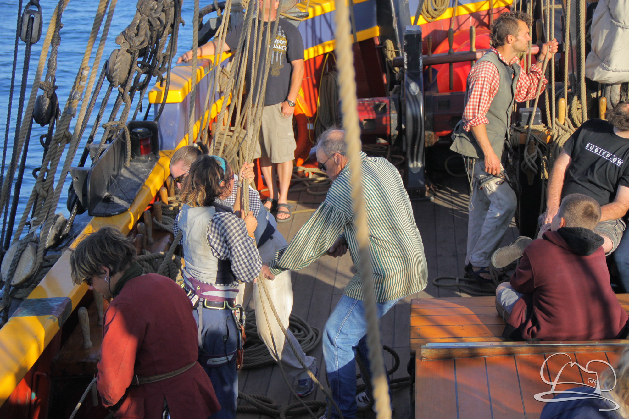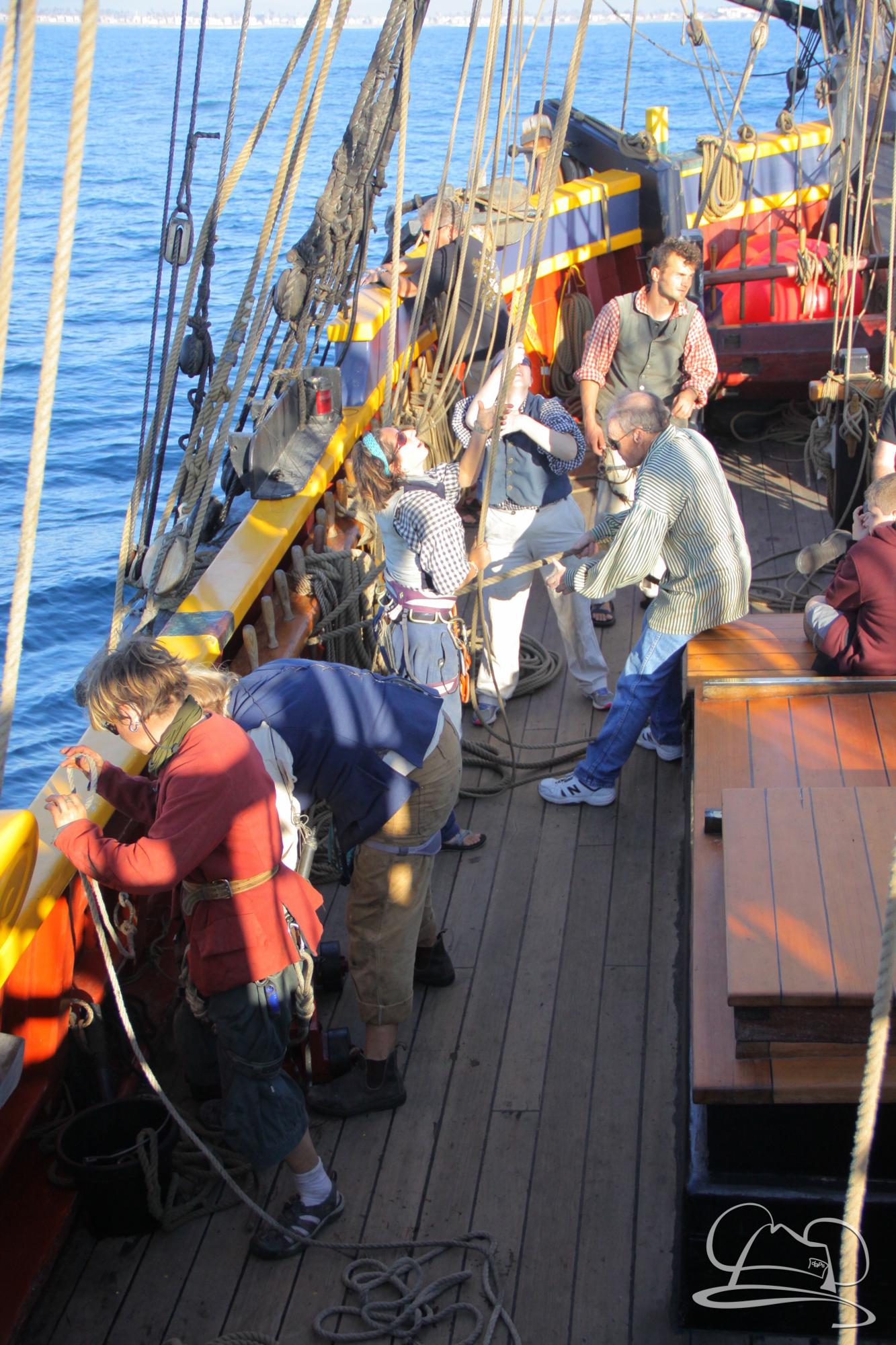 After about an hour, the engines were cut and the sails were raised. Within a few minutes, the ship was sailing completely under wind power. It was beautifully quiet and freeing as the Lady Washington slid silently through the sea. Because of a lack of strong wind, the progress was less than speedy. It was time for the battle.