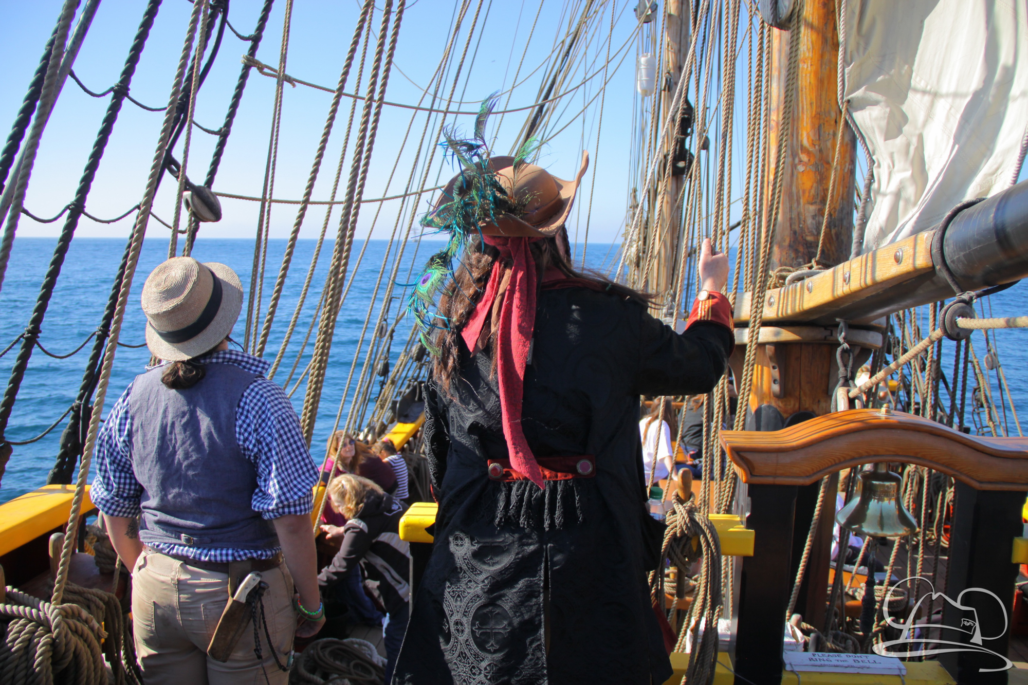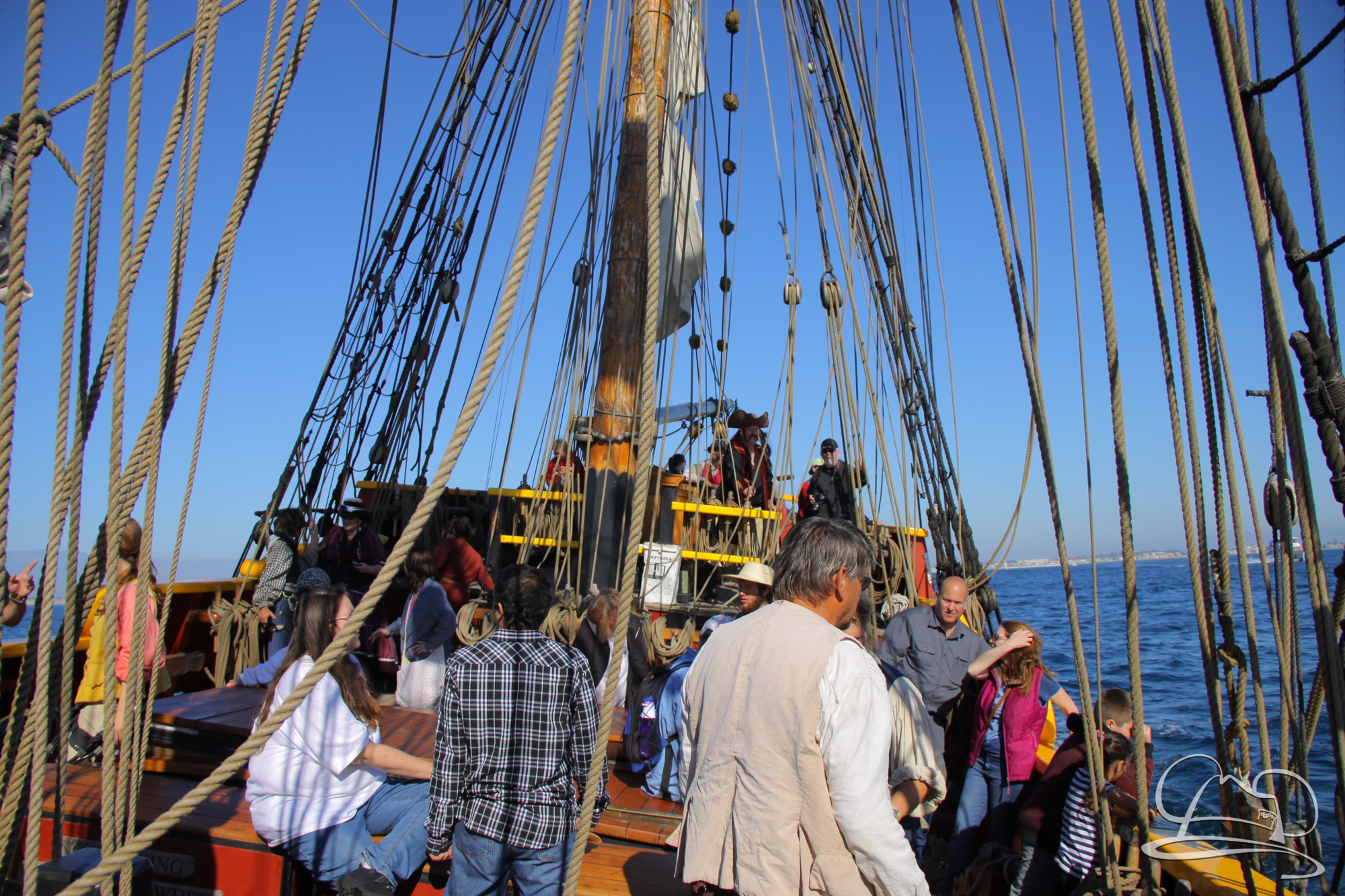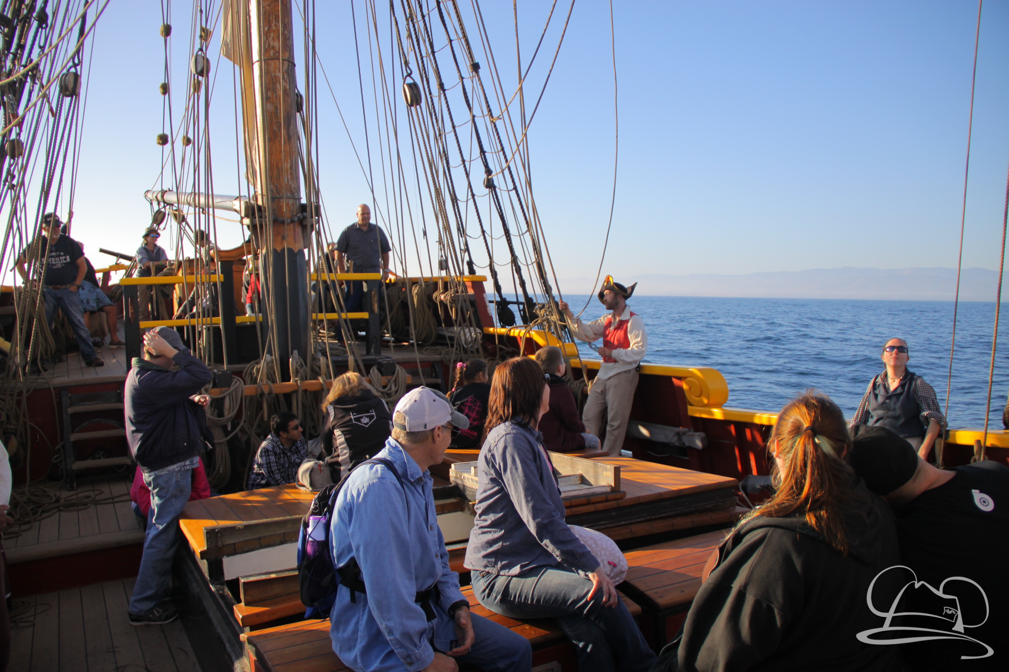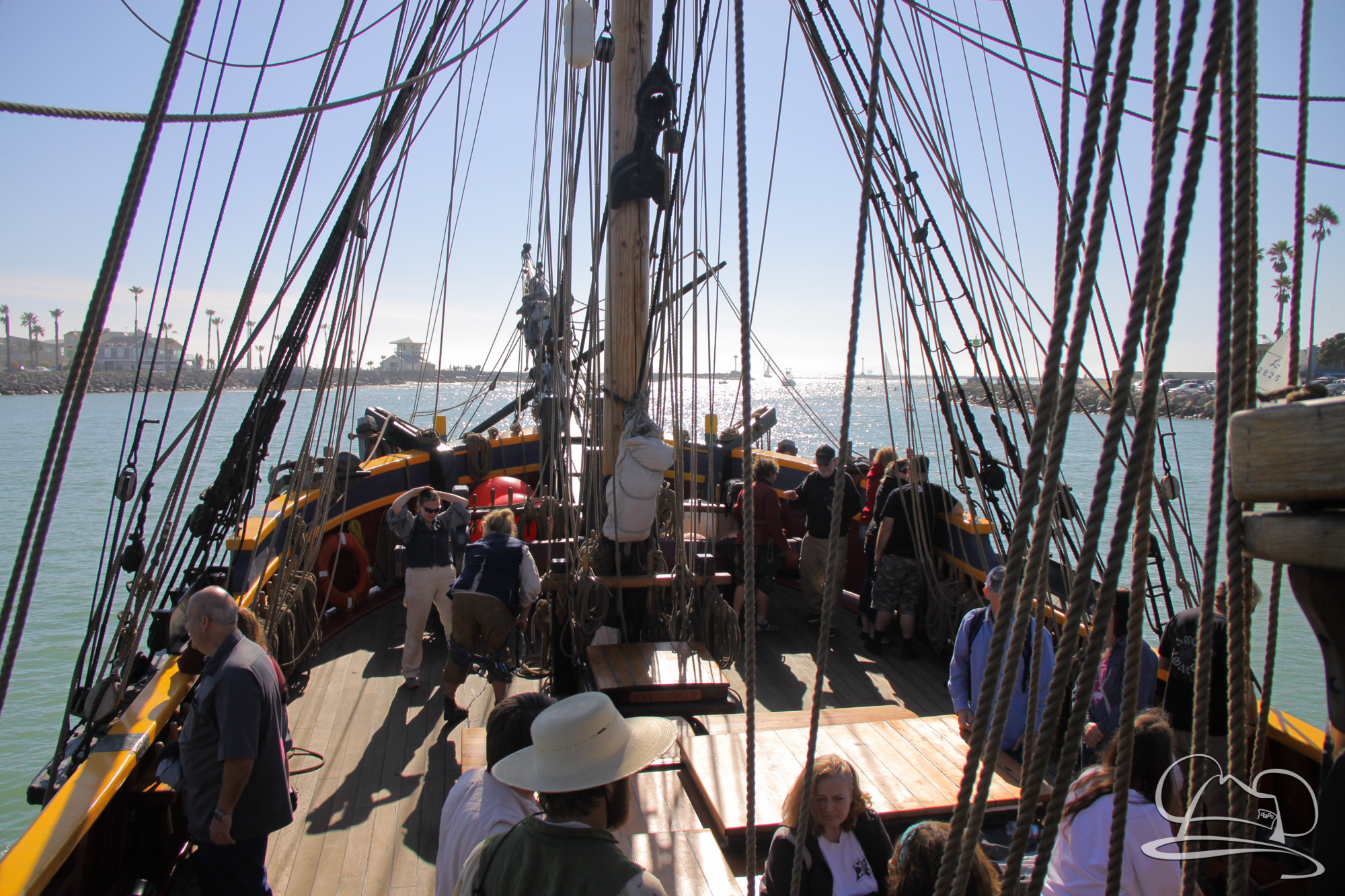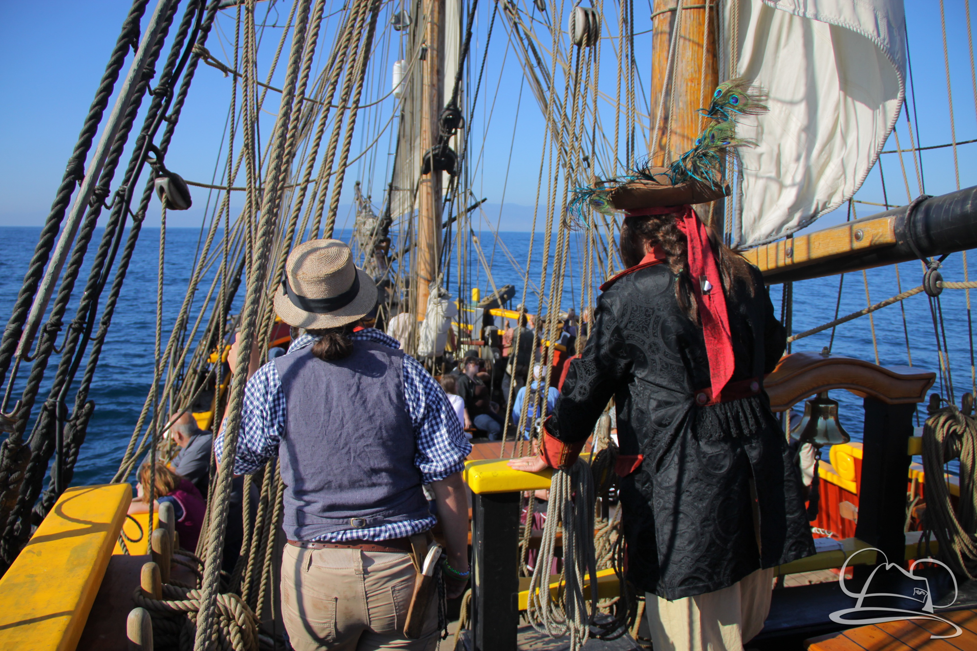 Upon the conclusion of the battle, it was time to begin the trek back to the Channel Islands Harbor. As had happened while traveling out, sea shanties were sung. A more in depth history of the Lady Washington was shared as well. We were also allowed to explore down below deck and purchase things from the gift shop found down there (which was really just a shelf against the bunks). There, we found the last piece remaining aboard the Lady Washington from the filming of Pirates of the Caribbean: The Curse of the Black Pearl.