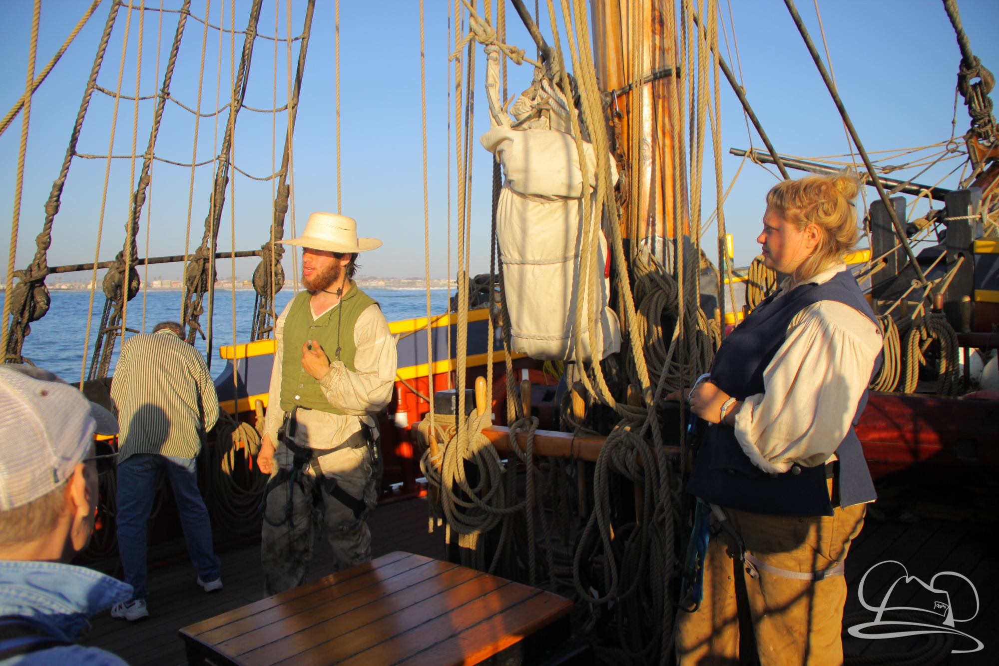 As we made our way out into the ocean, the crew shared about the ship. This included some of the history, how things worked aboard ship, and how long some of the crew had been aboard. The captain was incredibly knowledgeable and shared stories and jokes as we made our way out to the location where the battle would take place.