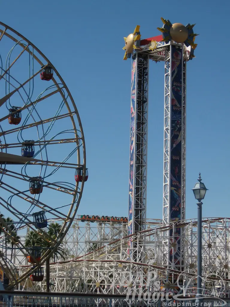 More blatant changes have come in attractions and, of course, World of Color. One attraction that faced dismantling because of the move into a more nostalgic pier is the Maliboomer. This tower ride was based on a carnival game known as the “high striker.” As the game goes, so did guests who were shot up to “ring the bell” at the top and drop back down. “Scream shields” kept sound to a minimum.