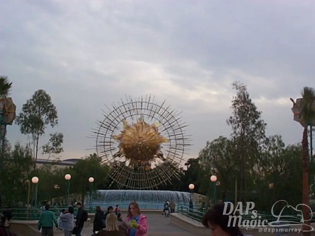 Elsewhere in the plaza was the aptly named Sun Icon which sat atop the Wave Fountain. This structure which drew guests into the main area of the park was a bit of an abstract representation. It still had an entertaining fountain and photo opportunity for guests. Where it sat is where Carthay Circle now sits and serves as the castle-like icon of the park.