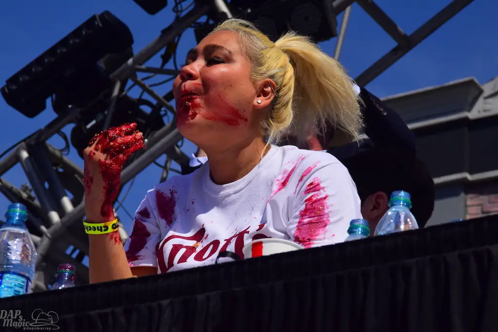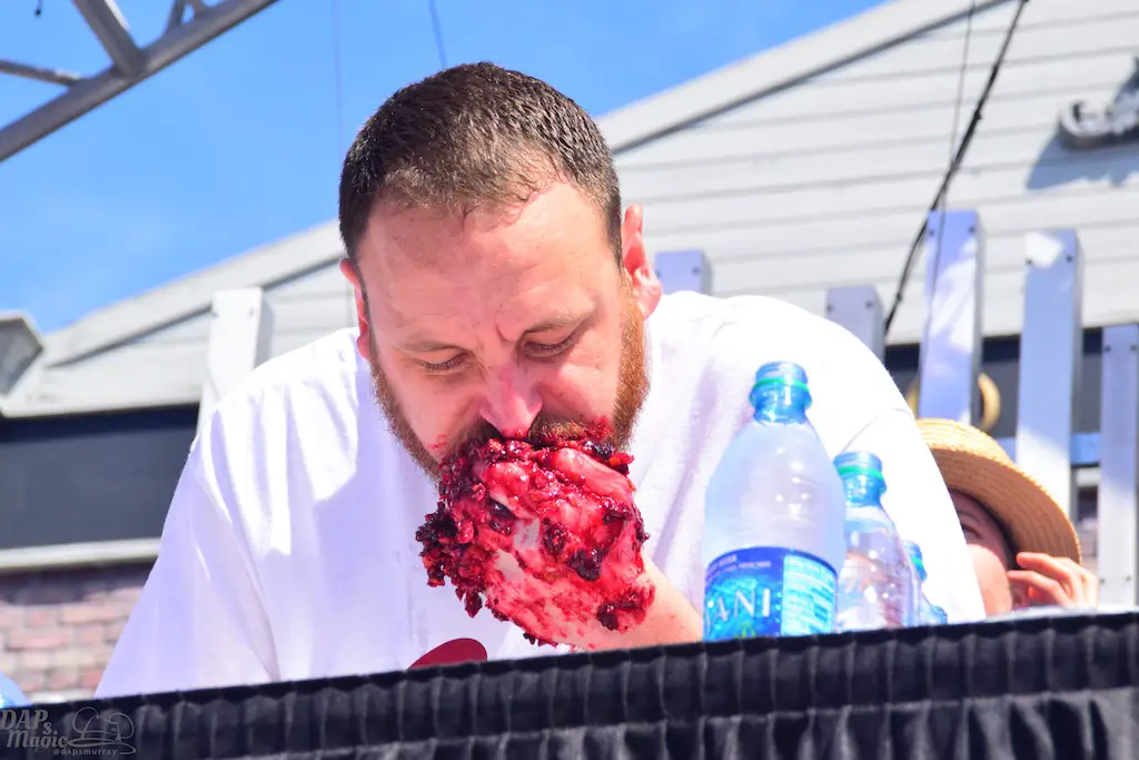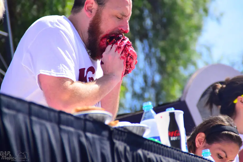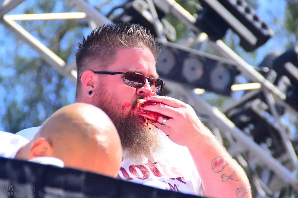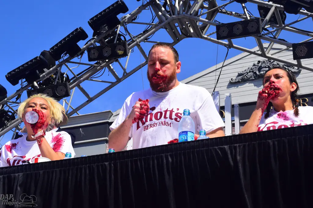 Each had 8 minutes to eat as much pounds of pie as they could. It was a messy, adrenaline filled contest. It was intriguing and disgusting at the same time. This was a unique experience to behold. And, yes, Joey kept his title as the champion, even setting a new record.