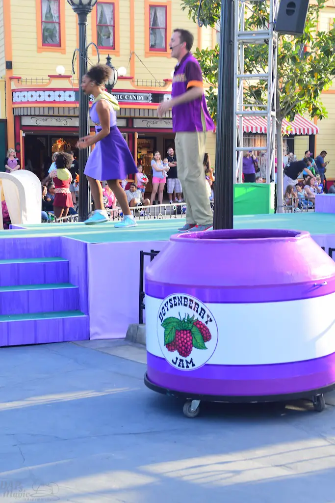 A new show that debuted for this year’s Boysenberry Festival is the Party in the Park. Centered the Boardwalk Circle, this show features a few of the Peanuts characters entertaining with some singers and dancers. Charlie Brown, Linus, and Lucy together are participating in a Boysenberry contest and different songs are performed in the progression of awaiting the results. At a couple points, kids from the audience are invited to join along with instruments and dancing.