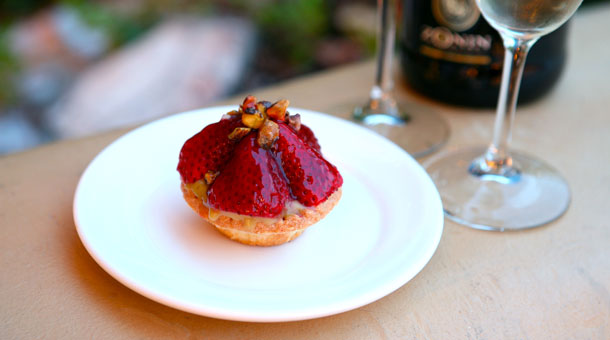 - Fresh Strawberry and Pistachio Cream Tart, paired with a featured wine