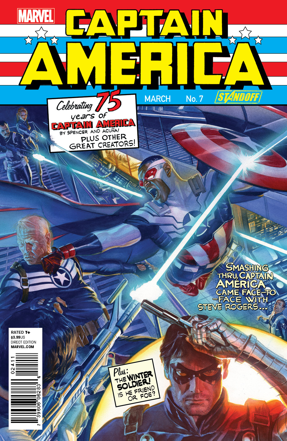 New York, NY—March 7th, 2016 — Exploding onto the scene in 1941 with a punch that would reverberate through history, Captain America would go on to become an icon and one of the most influential comic book characters ever created. This March, celebrate his 75th Anniversary and the legacy of what it means to be Captain America with the oversized CAPTAIN AMERICA: SAM WILSON #7 – a giant 80 page issue commemorating the past, present and future of the Sentinel of Liberty!