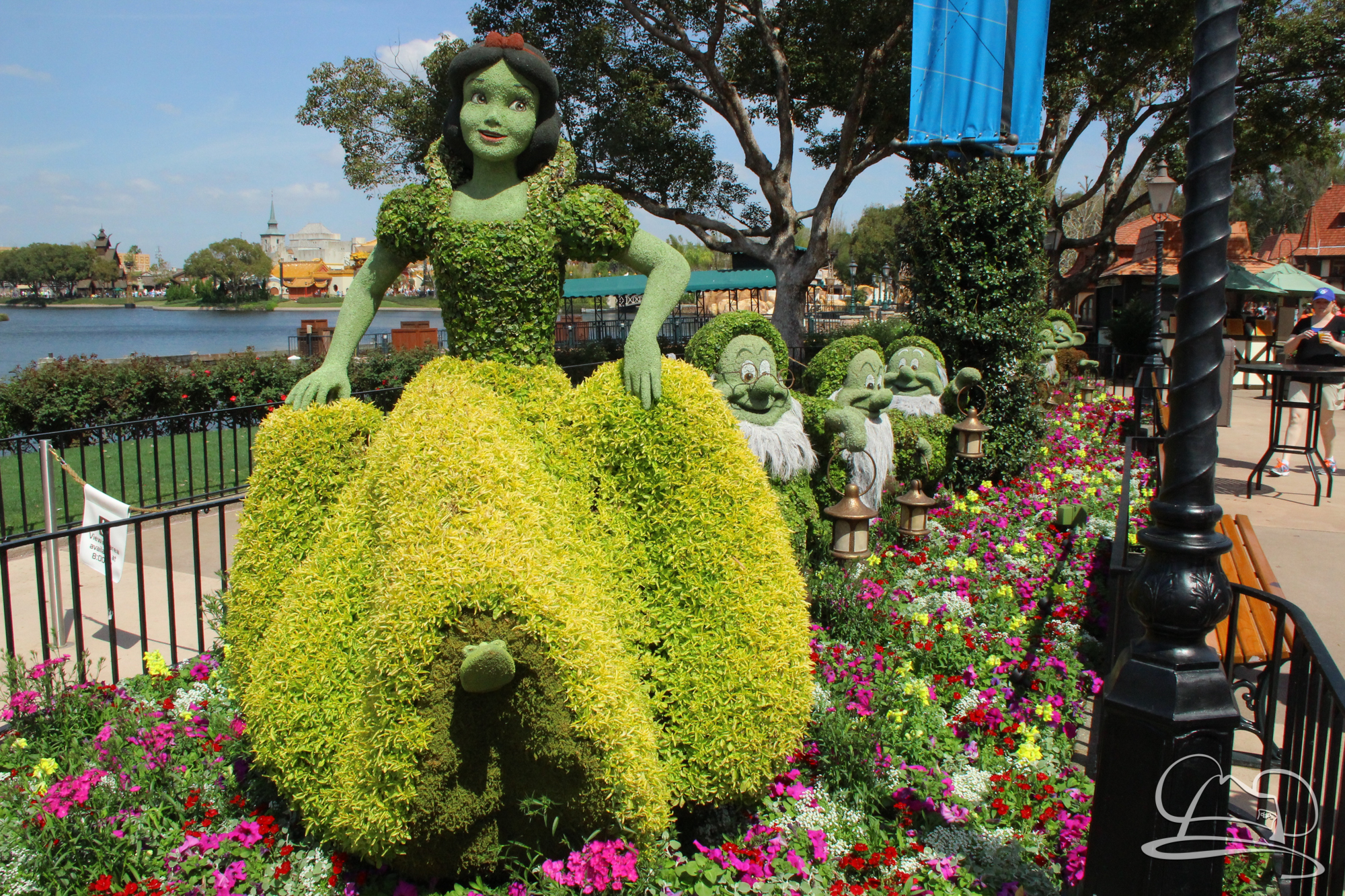 The first full day at Walt Disney World was spent at Epcot. I love Epcot. It is beautiful in both scenery and also with the people who work there. I love how people from all around the world come together to be a part of the Disney magic. Wandering around World Showcase and getting to meet all of these different people with different languages and cultures is an absolutely beautiful experience. One minute I was speaking French to a young man after purchasing some glasses, the next minute I’m watching Italian dancers twirling flags around the central plaza of the Italy Pavilion. It was also the Flower & Garden Festival at Epcot and that is absolutely beautiful. I can’t imagine the upkeep for all of these flowers. There are some absolutely stunning flower gardens there in general, make it a festival and it goes to the next level! Finally, we visited a few characters as we wandered around Epcot. All in all, it made for the beginning of a perfect trip.