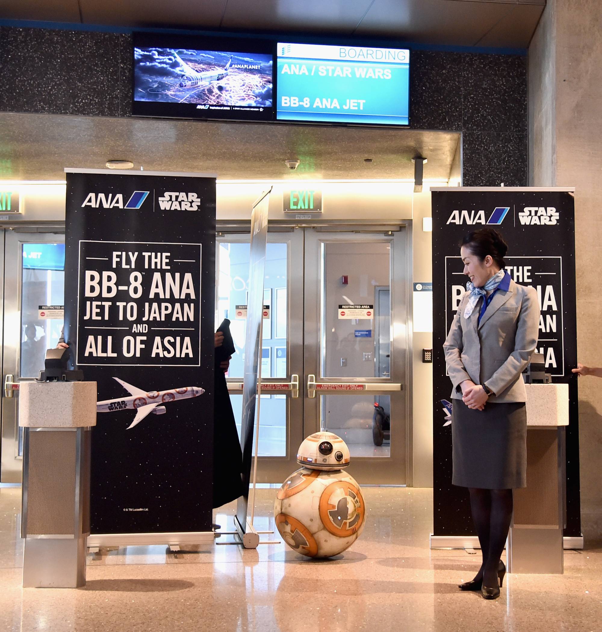 LOS ANGELES, CALIFORNIA – MARCH 28: ANA’s BB-8 themed jet lands in Los Angeles in celebration of in-home release of STAR WARS: THE FORCE AWAKENS on March 28, 2016 in Los Angeles, California. (Photo by Alberto E. Rodriguez/Getty Images for Disney)