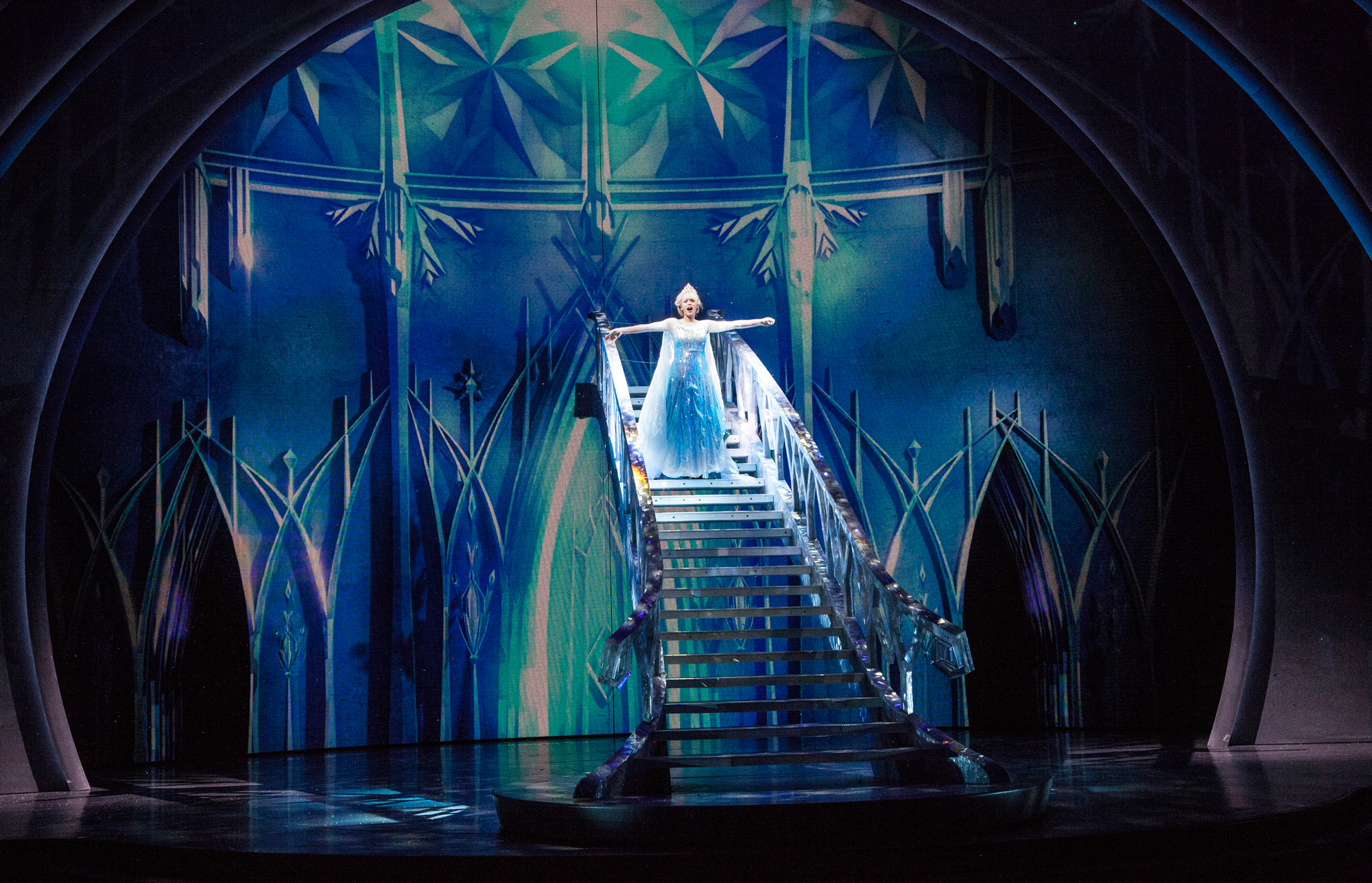 ‘FROZEN – LIVE AT THE HYPERION’ — A new theatrical interpretation for the stage based on Disney’s animated blockbuster film, Frozen is now playing at the Hyperion Theater at Disney California Adventure Park. The show immerses audiences in the emotional journey of Anna and Elsa with all of the excitement of live theater, including elaborate costumes and sets, stunning special effects and show-stopping production numbers. (Scott Brinegar/Disneyland Resort)