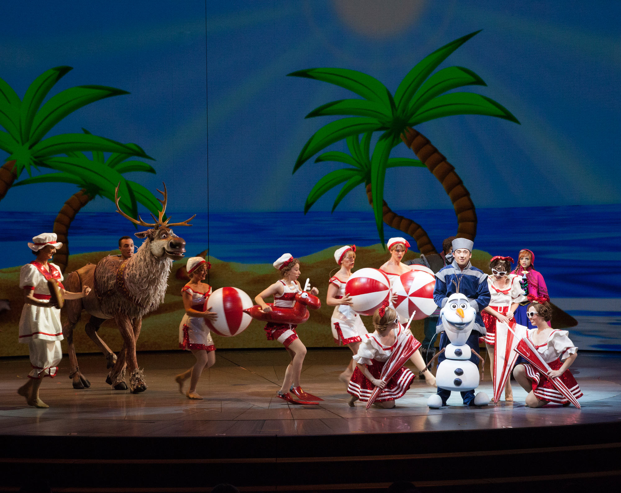 OLAF DREAMS OF SUMMER IN ‘FROZEN – LIVE AT THE HYPERION’ — A new theatrical interpretation for the stage based on Disney’s animated blockbuster film, Frozen is now playing at the Hyperion Theater at Disney California Adventure Park. The show immerses audiences in the emotional journey of Anna and Elsa with all of the excitement of live theater, including elaborate costumes and sets, stunning special effects and show-stopping production numbers. (Scott Brinegar/Disneyland Resort)