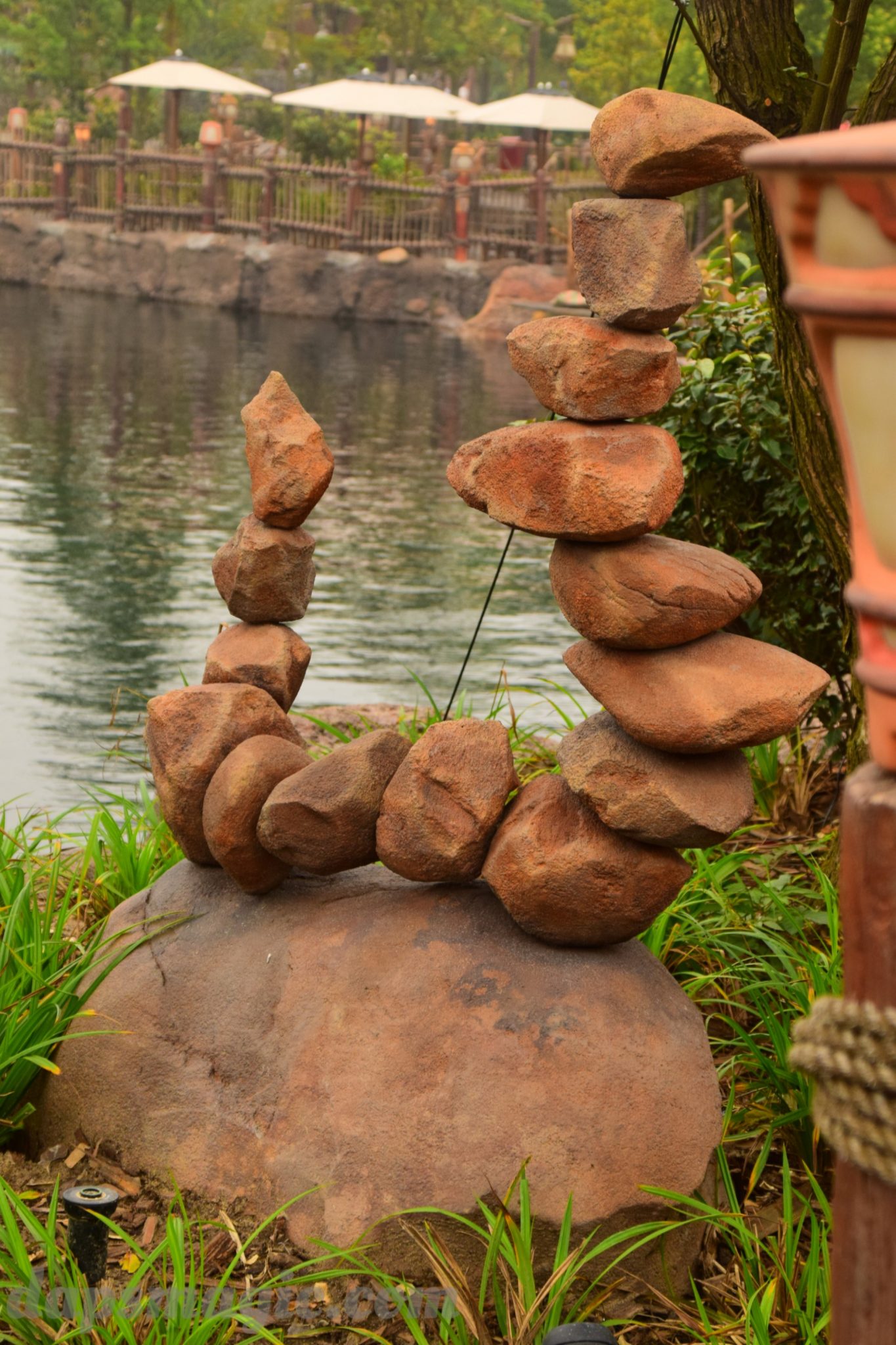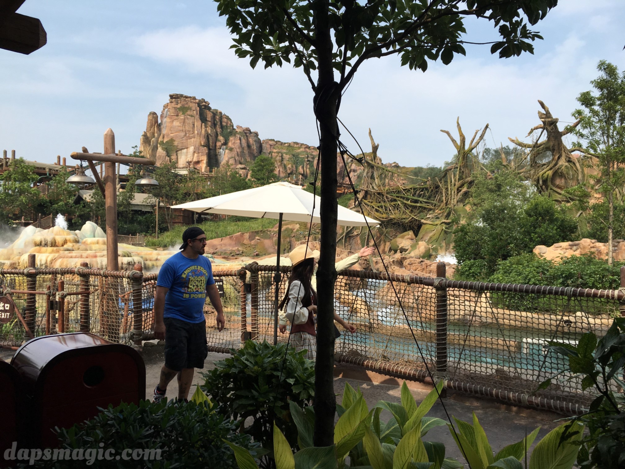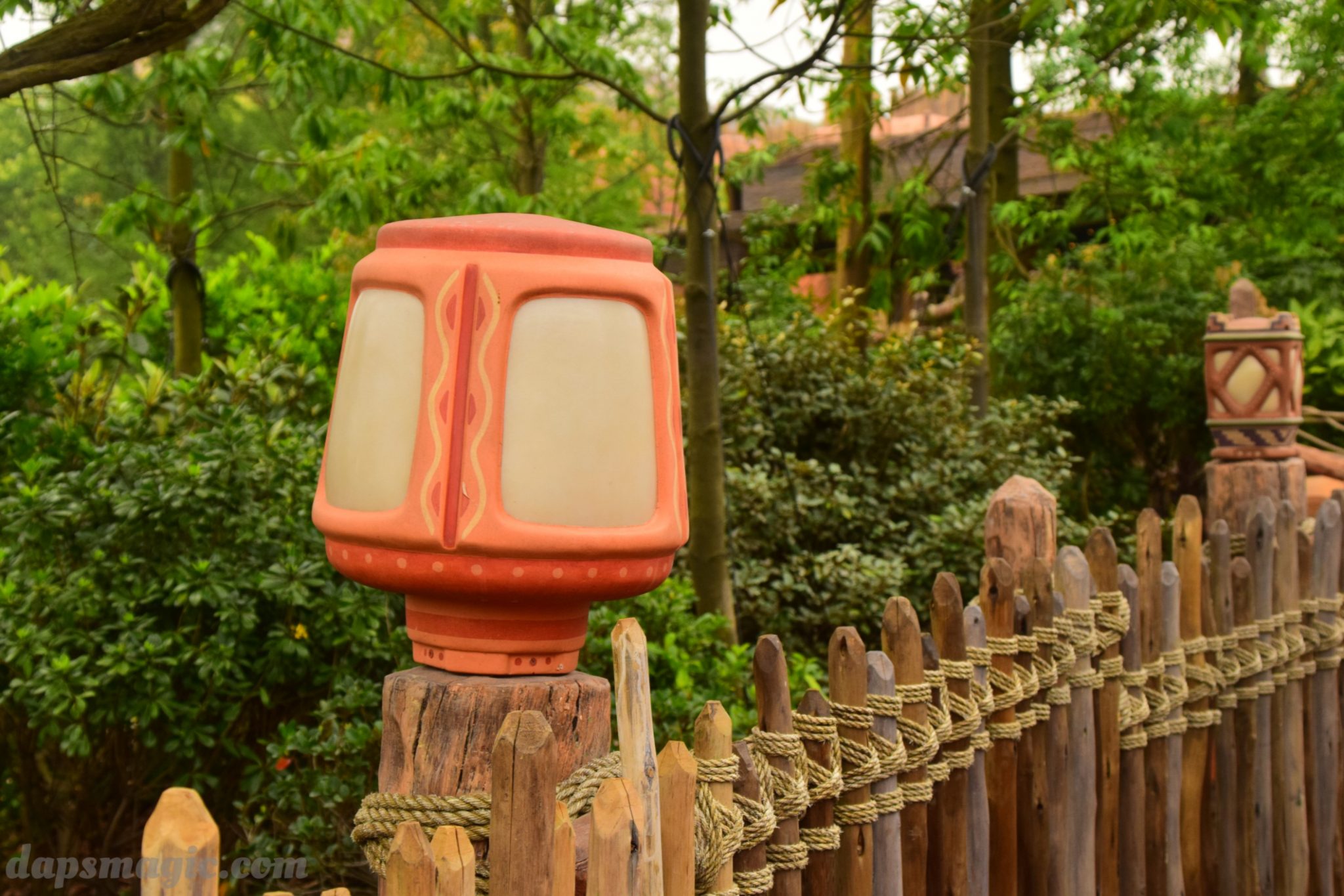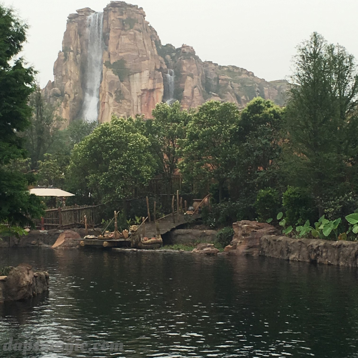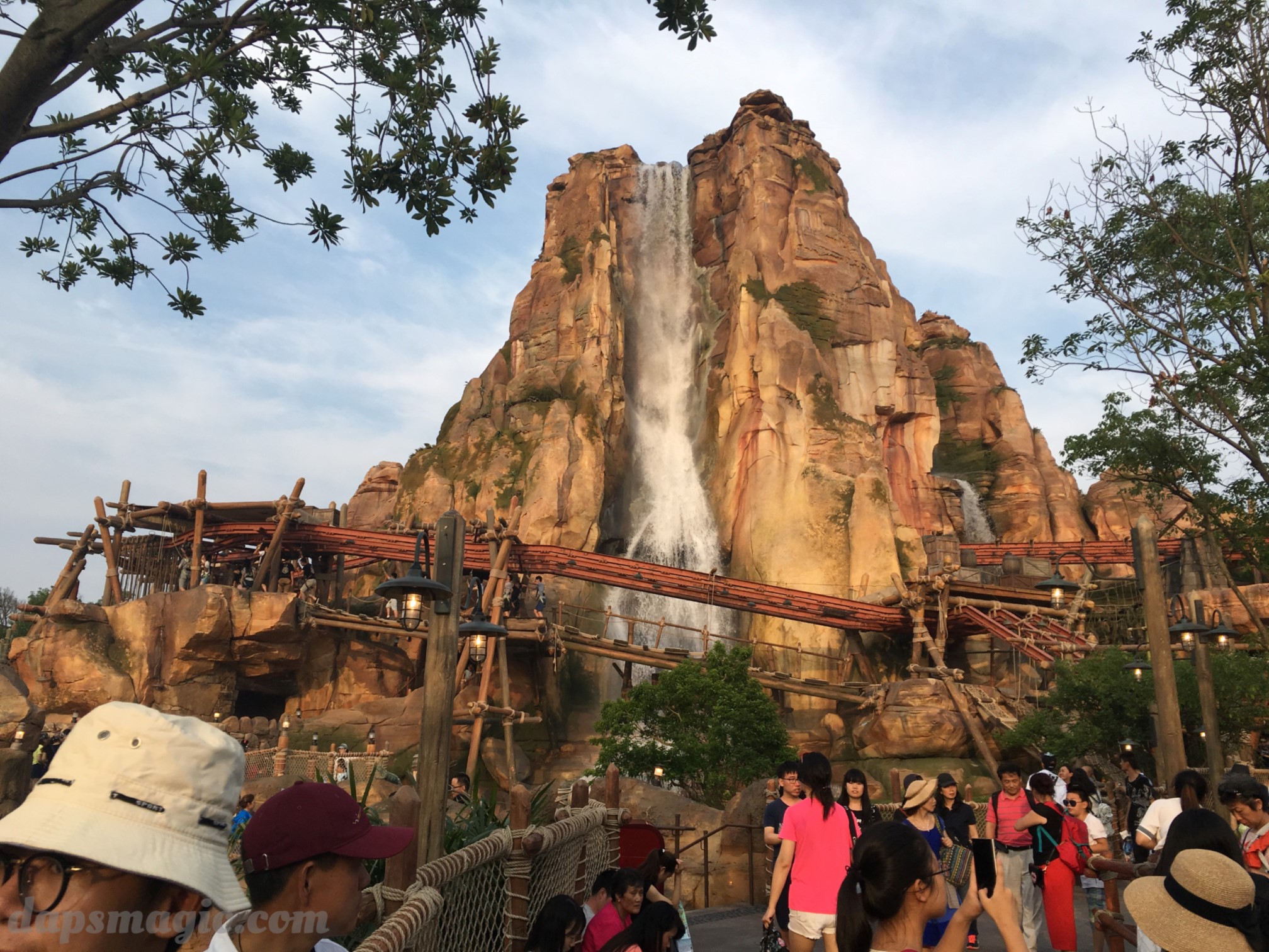Adventure Isle feels like one of the most mysterious places ever constructed by Walt Disney Imagineering. Entering under the Adventure Isle sign guests are greeted by lush vegetation and a big mountain, translated in English to “Roaring Mountain.” This mountain is grand, and the highest in all of Shanghai…but that’s like saying Splash Mountain is the highest mountain in Florida. As you start to go down the paths of the isle, a river coming from the waterfall of the mountain serves as home to Explorer Canoes. In all, this land has a natural environment with man made structure built in. It’s a gorgeous landscape that makes it feel like a true jungle environment.