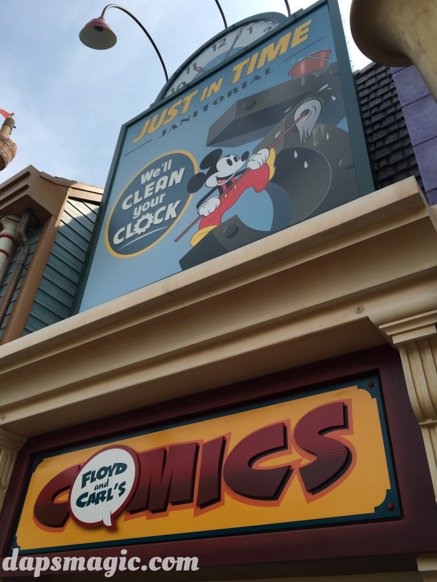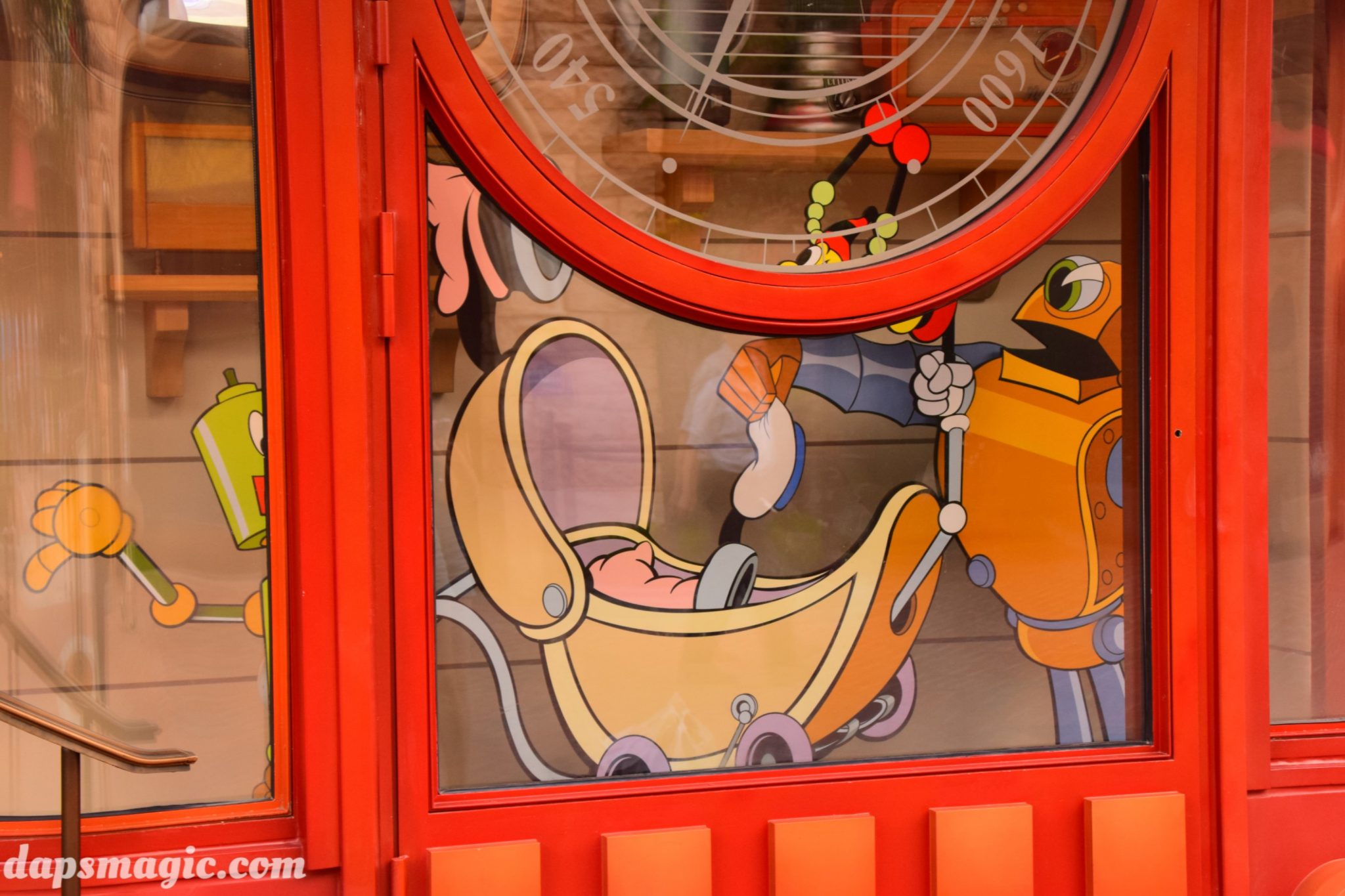Once a ticket is obtained, it’s time to go through the turnstiles. Looking straight ahead gives view to the traditional Mickey topiary that signals that this is a Disneyland. Above it is a structure that looks like a train station, but only serves as an image of one. But, it does have an iconic clock tower with Mickey Mouse watch face to signal that guests are about to enter Mickey Avenue. Before getting to this land, does having the fake train station make one mad? I thought it was a nice touch to pay homage to Disneylands before, but say that this is an original. This is the only Disneyland park that does not have a train. For that matter, this doesn’t even have a Main Street to greet guests (although Tokyo Disneyland calls theirs World Bazaar). Having a new type of entrance experience was refreshing, yet nostalgia friendly.