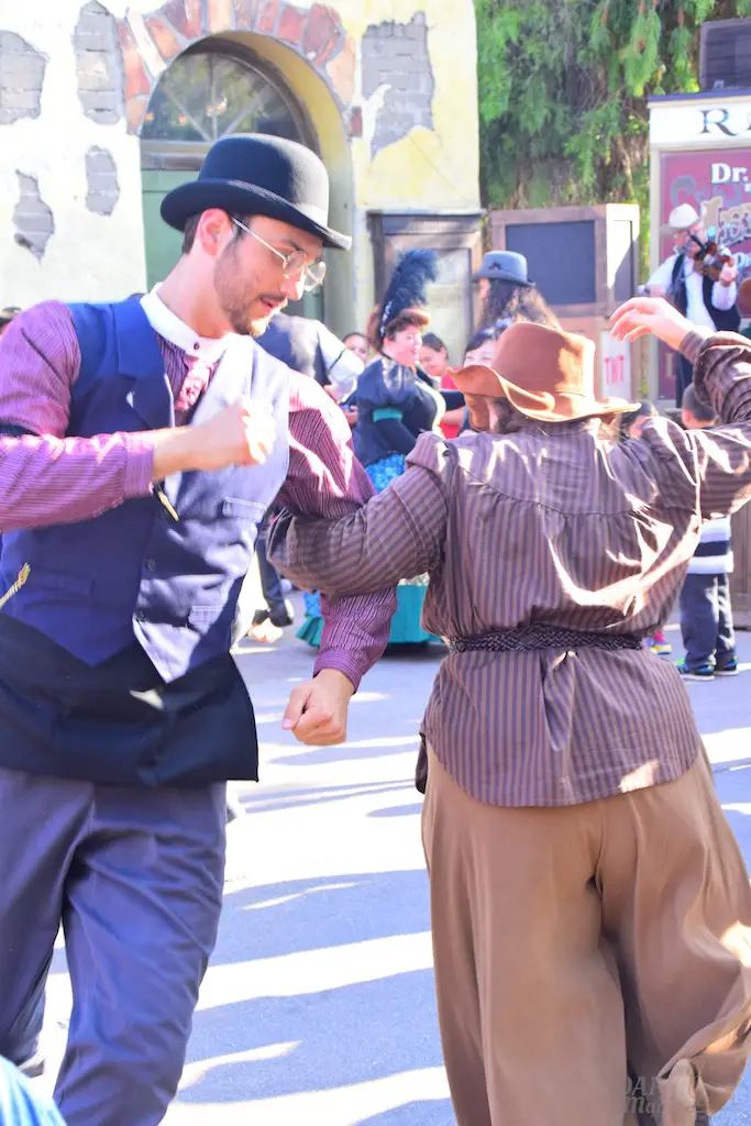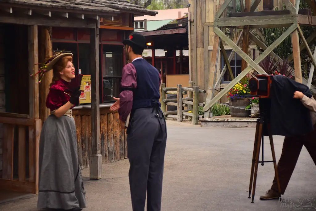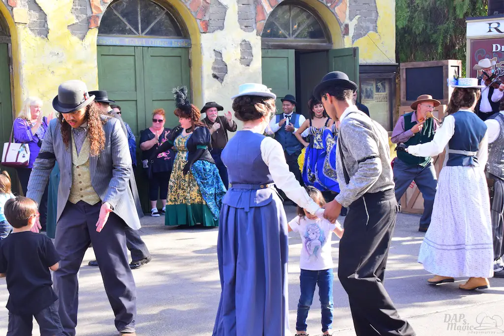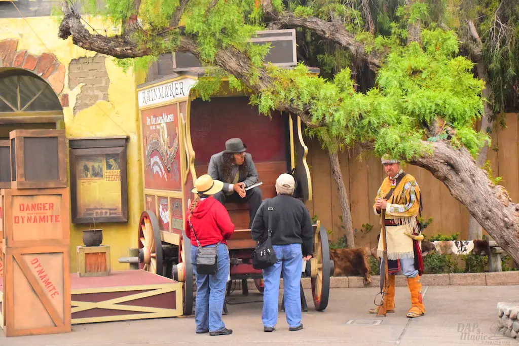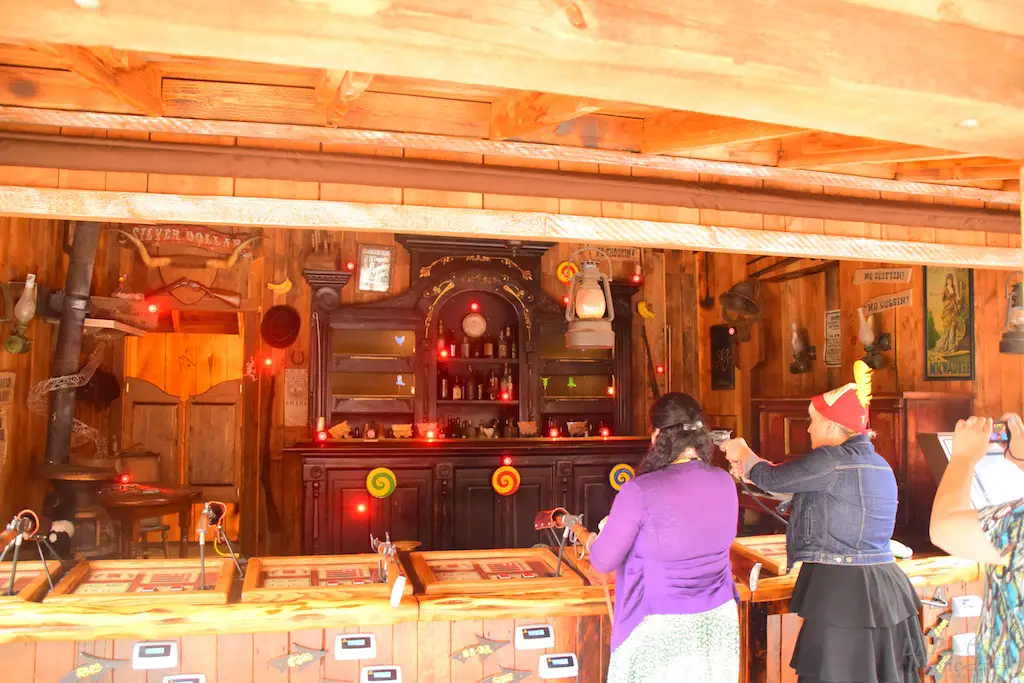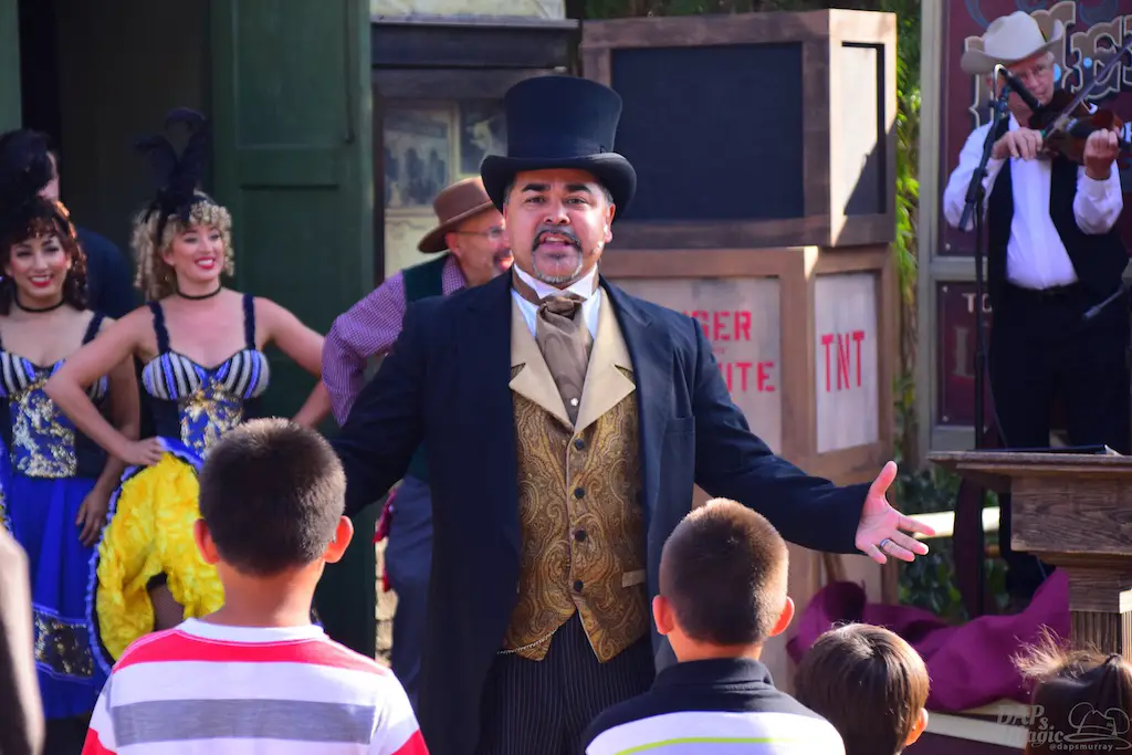 Calico residents interact with guests, many times asking them to perform tasks that will shape the day. Information can be gathered to help each character’s journey, and it culminates in a Hoedown at the end of the day. Besides these tasks, guests can make patterns for dresses, wanted posters, test their aim at a shooting gallery, be sworn in as a citizen at the town hall, or get hair put on them by the barber…instead of having it cut off.