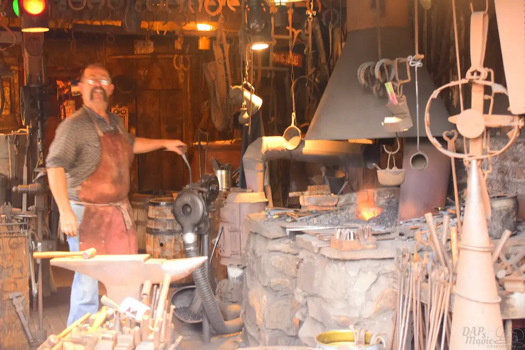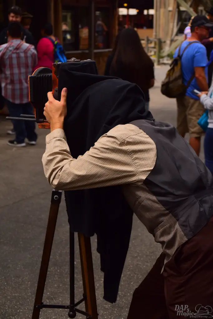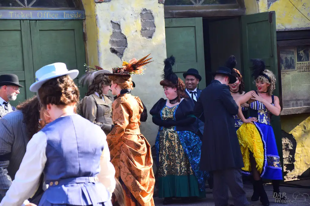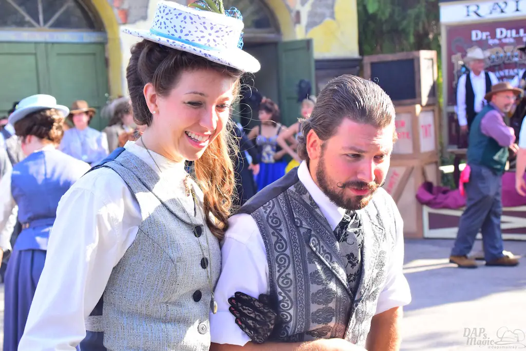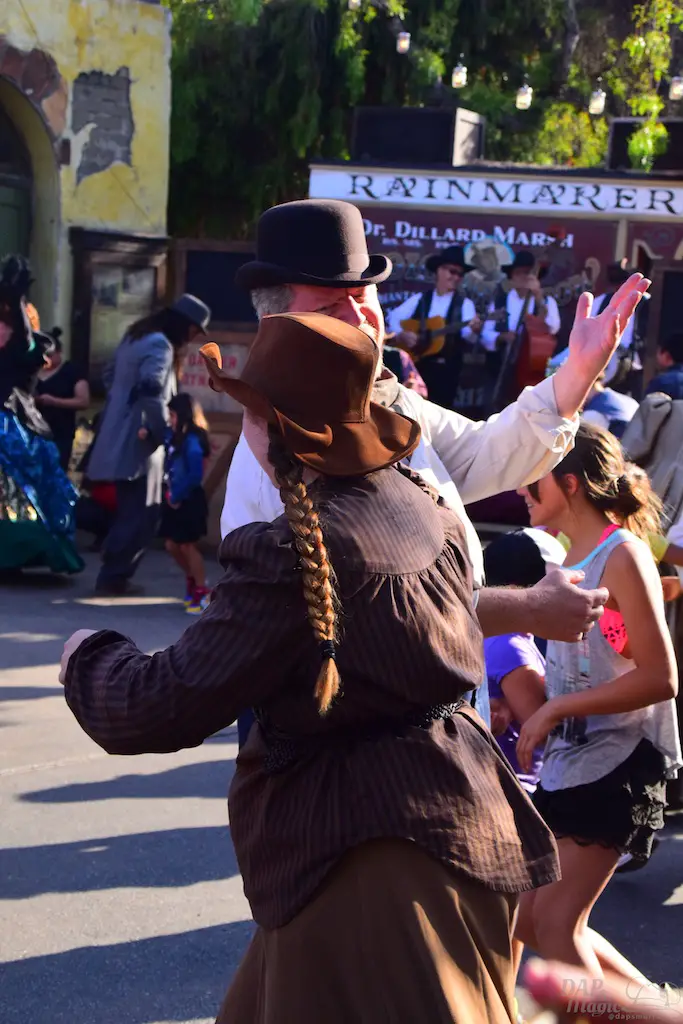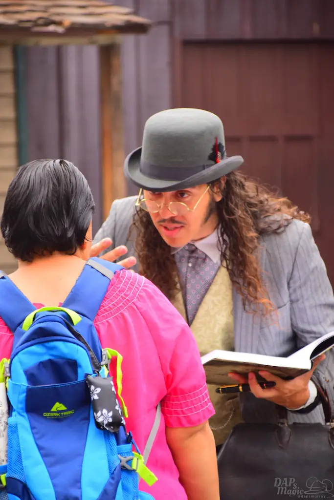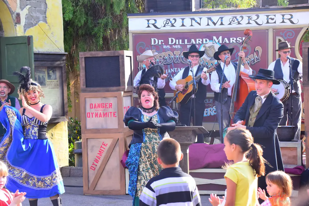 Calico residents interact with guests, many times asking them to perform tasks that will shape the day. Information can be gathered to help each character’s journey, and it culminates in a Hoedown at the end of the day. Besides these tasks, guests can make patterns for dresses, wanted posters, test their aim at a shooting gallery, be sworn in as a citizen at the town hall, or get hair put on them by the barber…instead of having it cut off.