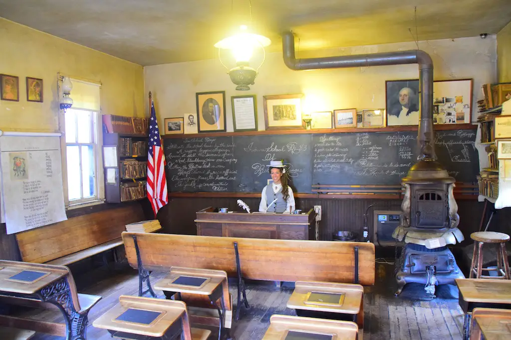 Many of the buildings that guests enter and the residents call home have been home to “peek-ins” which were constructed static scenes that gave glimpses of the western life. These have opened up for the first time for visitors to interact with the environment. Some of them have been restored for the anniversary, like the Bank and Assay Office. Others have been there before, but now come to life with the characters, such as the schoolhouse.