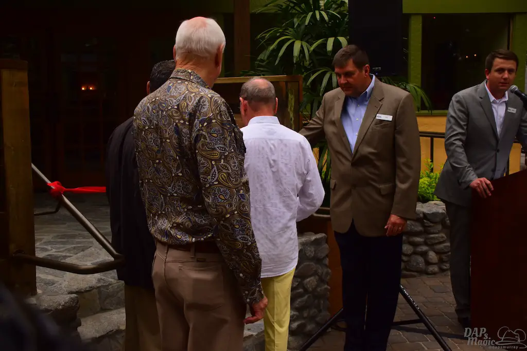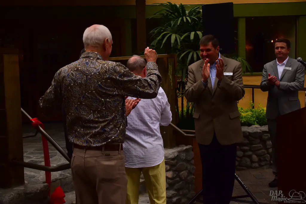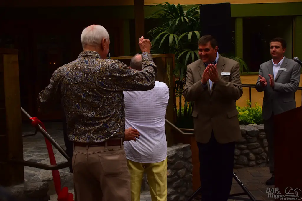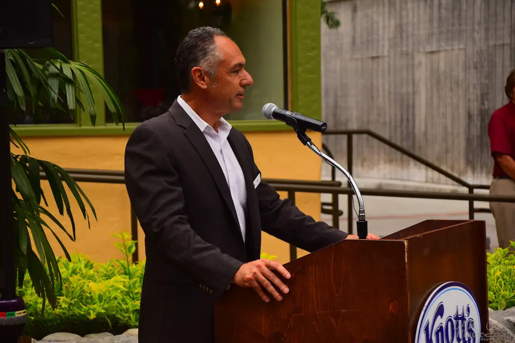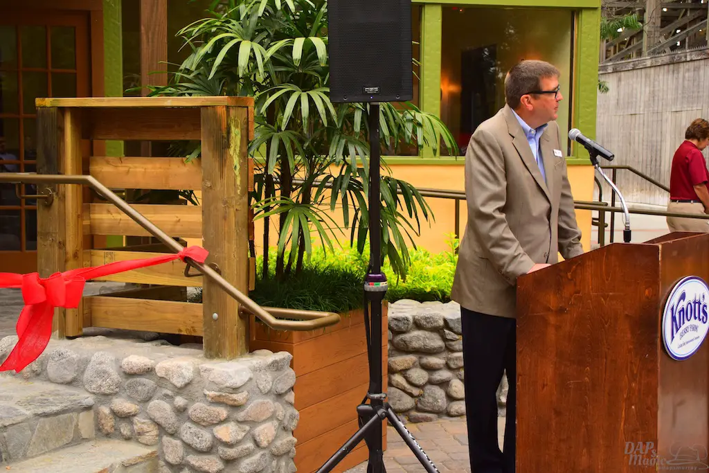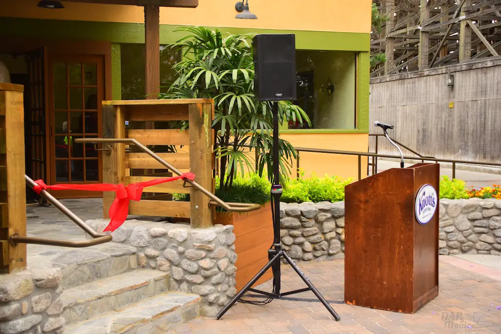 Attending all of this also gave way to celebrate more openings and the 75th anniversary of Ghost Town. First was a ceremony to acknowledge the newly refurbished Mrs. Knott’s Chicken Dinner Restaurant. This was the place that started it all. Walter Knott created Ghost Town to entertain people who were waiting to eat in the restaurant. If it weren’t for the restaurant, there would be no Ghost Town. Without Ghost Town, no theme park. Executives, representatives of congressmen, and members of the Knott family were in attendance to help cut the ribbon to the eatery.