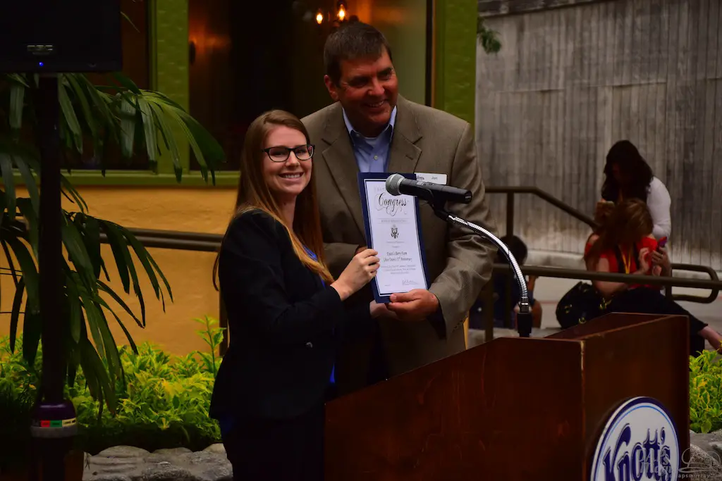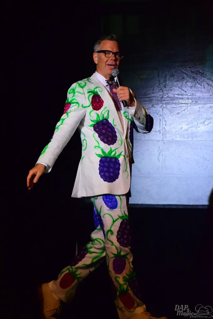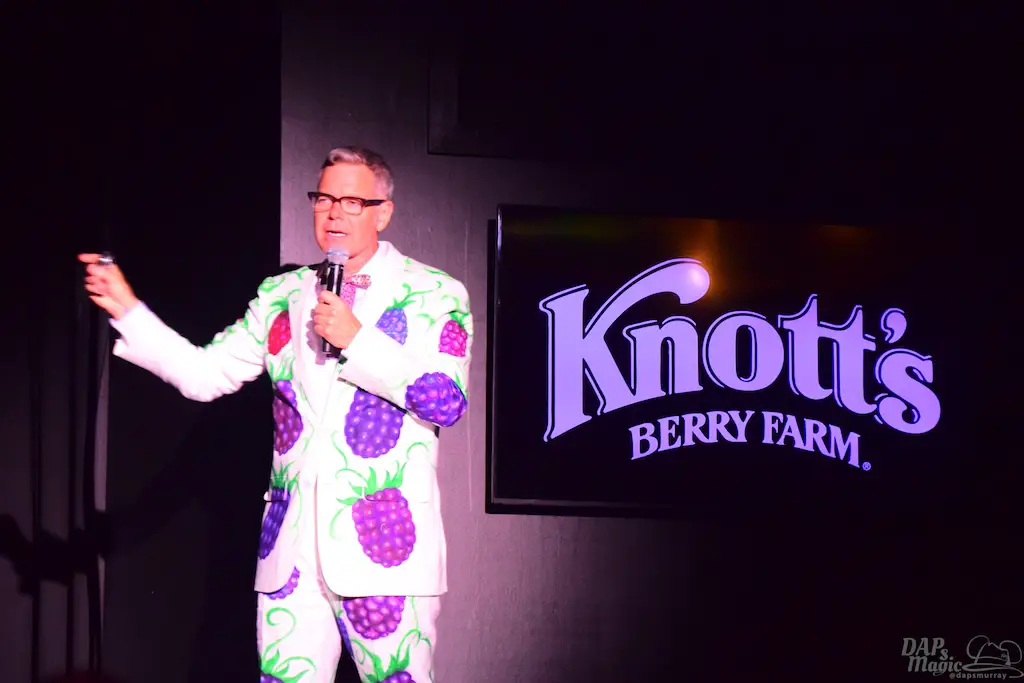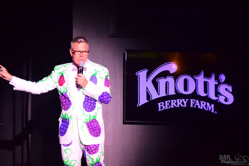 After a lunch in the great dining establishment, Charles Phoenix hosted a presentation on the history of the farm and Ghost Town. Wearing a boysenberry painted suit, Phoenix was hilarious, but shared the enthusiasm for history that many in attendance had. He has visited the park many times and enjoys it as much as any guest on their first visit. As he went through photos, history was shared, like how the Knott’s started the restaurant just to make ends meet during the Great Depression.