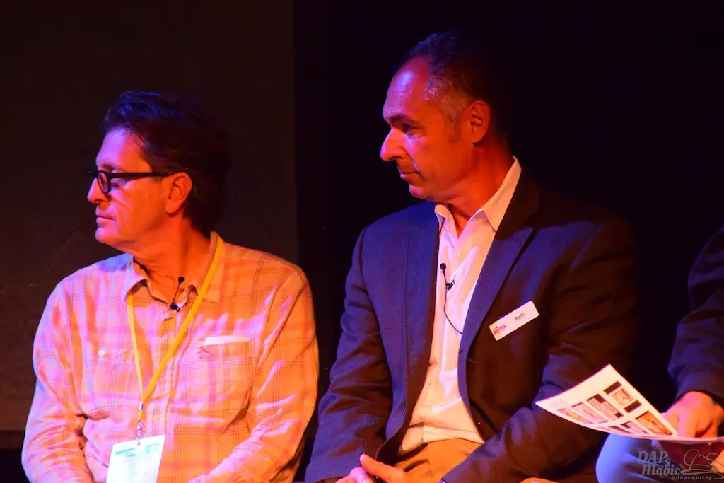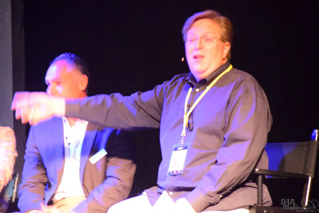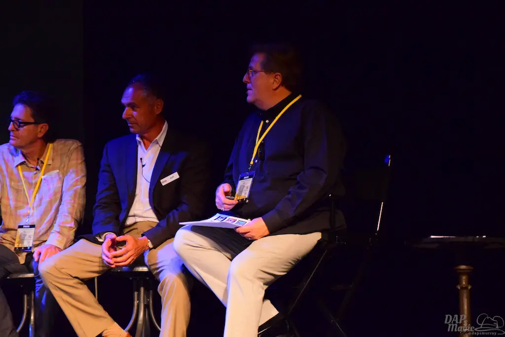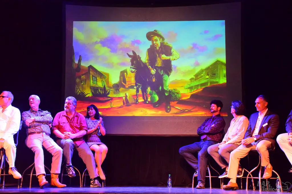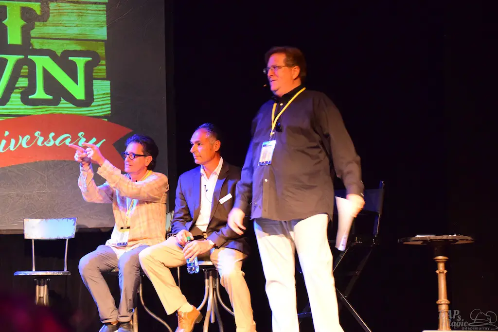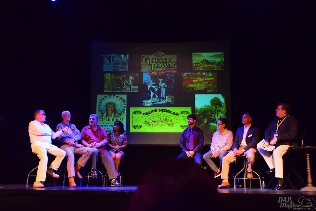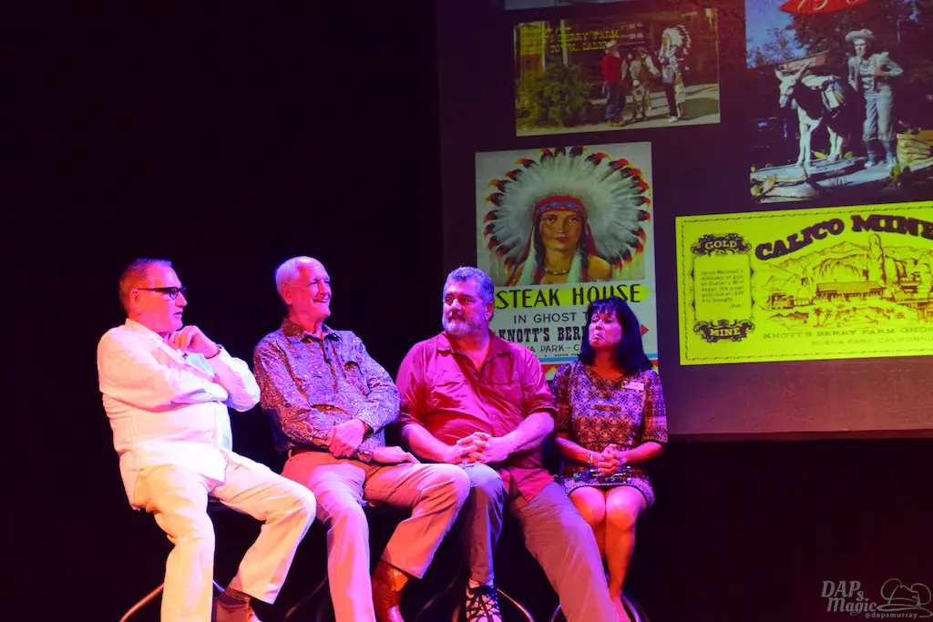 Following Charles Phoenix was a panel of those associated with Ghost Town history. Daryl Anderson and Steve Knott, grandchildren of Walter and Cordelia, were part of the panel and joined by others who got their start at Knott’s. Tim O’Day hosted the panel and brought in several photos to show off the history of the town. Some great stories got told, especially from the Knotts family. It was a memorable panel seeing some figures that have helped shape the park into what it is now.