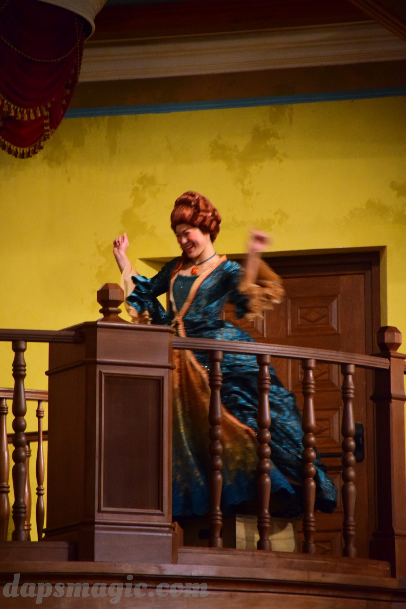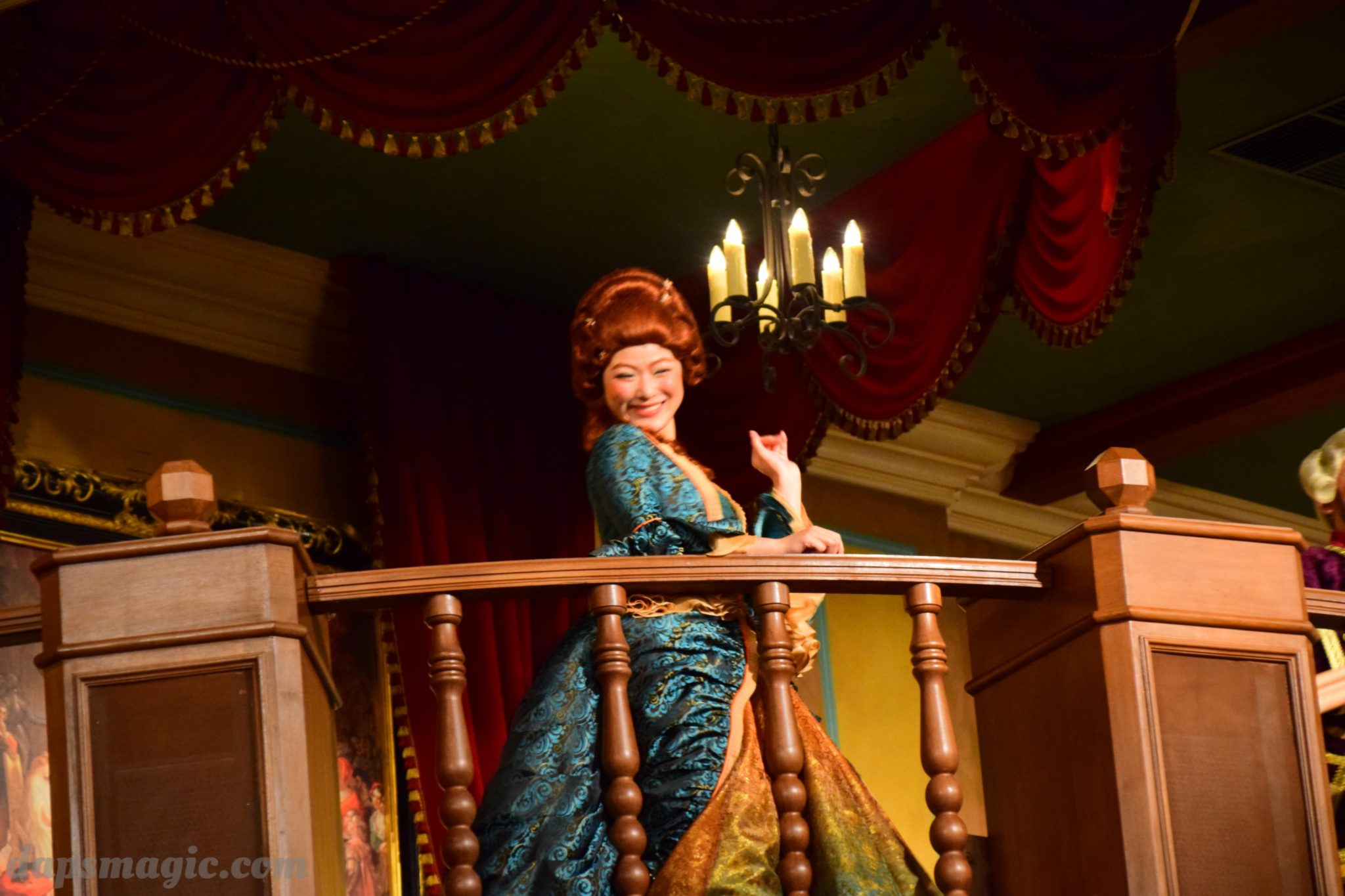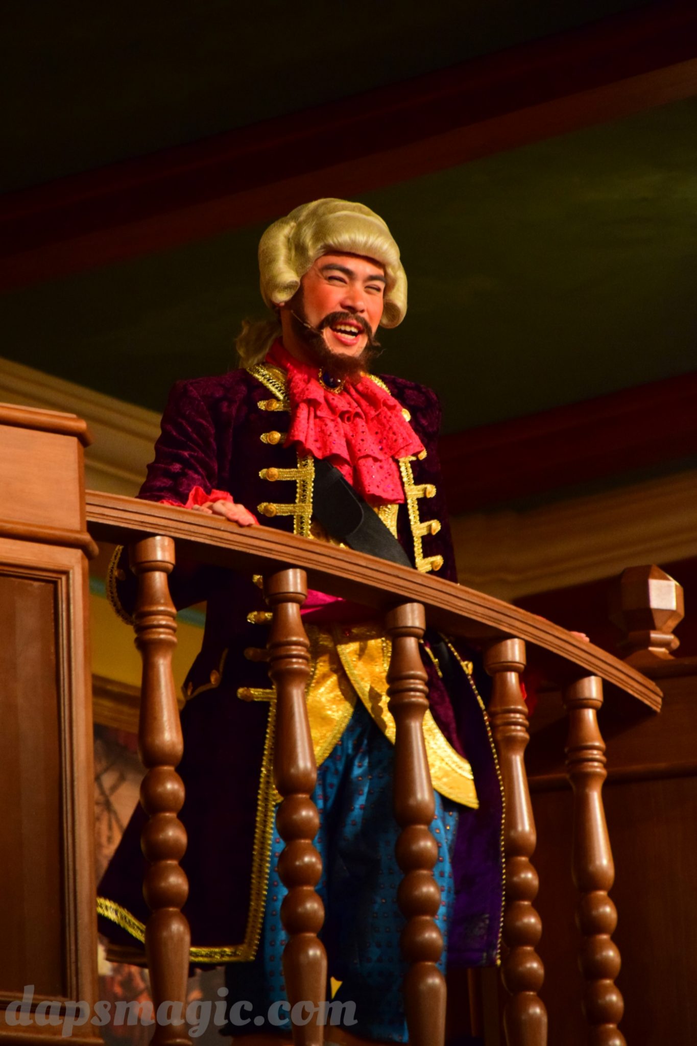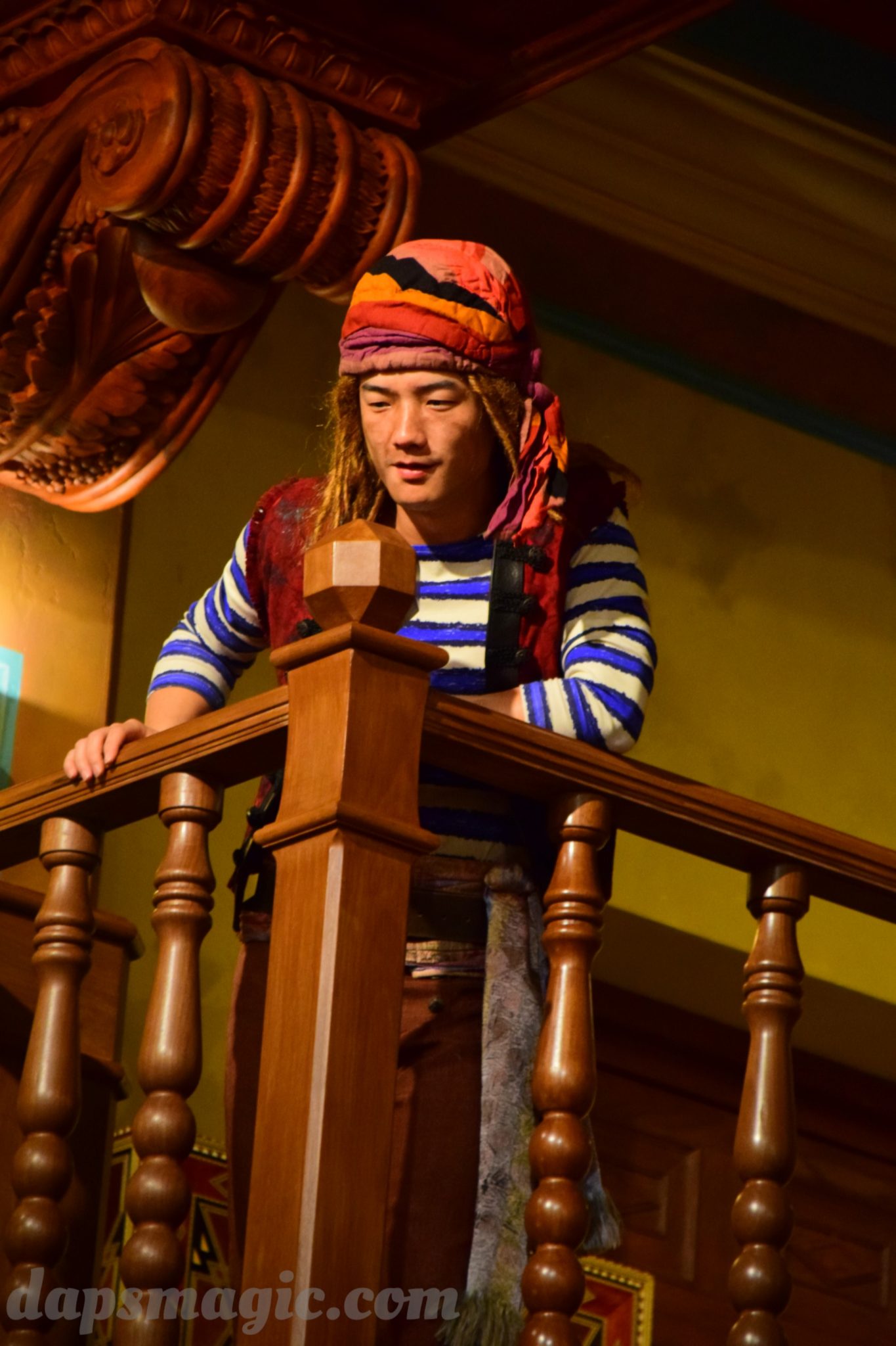 One of the main attractions is a stunt show starring Jack Sparrow. It is entirely in Chinese, so understanding is a bit difficult. From what I can tell, some pirates have infiltrated a theater and want to star in the production. Everyone hates the Admiral, who is the commander of the police force for Treasure Cove. As the play goes on, Jack Sparrow, who is wanted by the British navy and not liked by others, hides in the theater during the production. The Admiral shows up and lays siege to the theater, blowing it up and revealing a storm brewing outside. As a battle unfolds, it’s up to Jack to save the day.