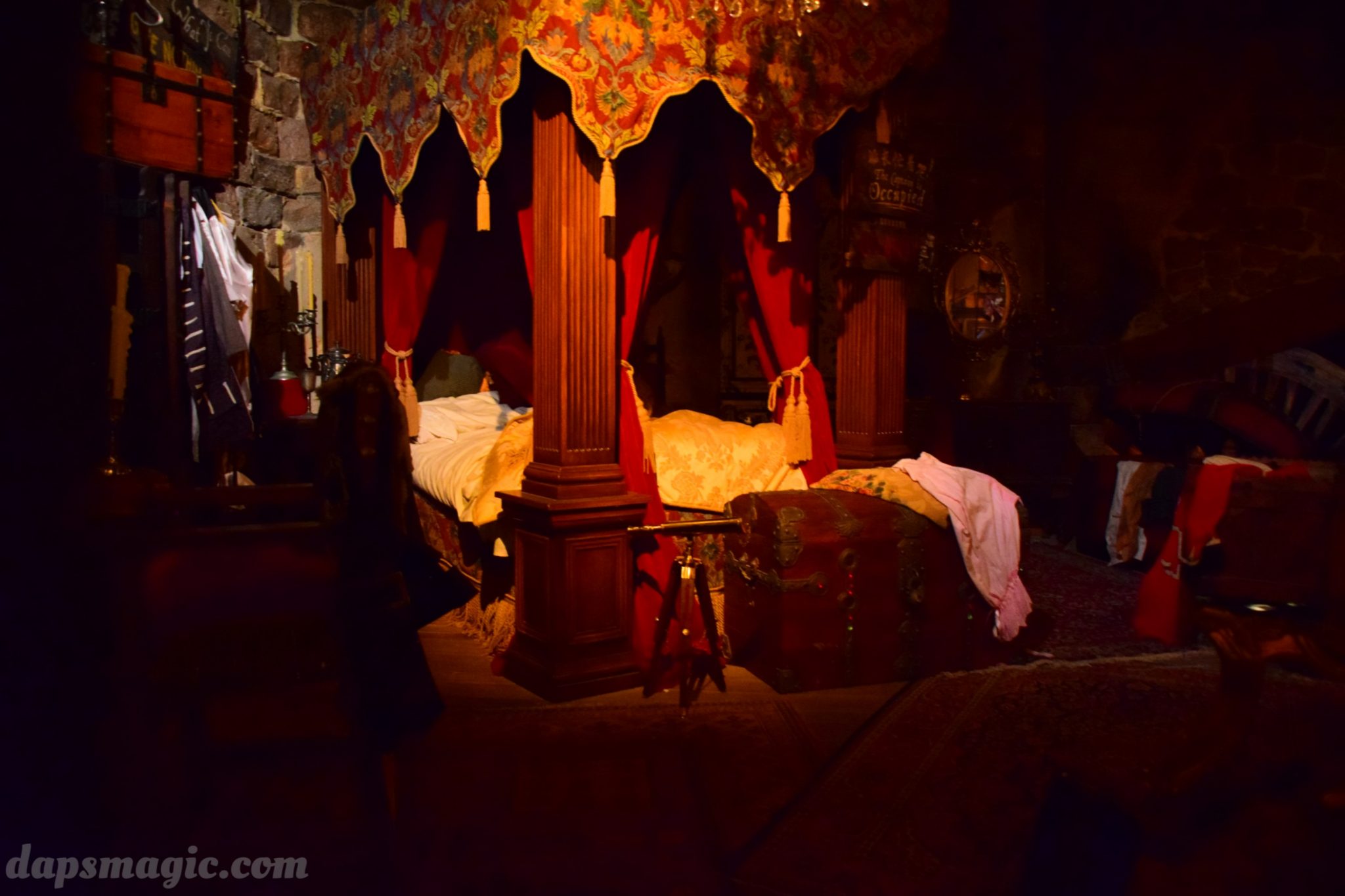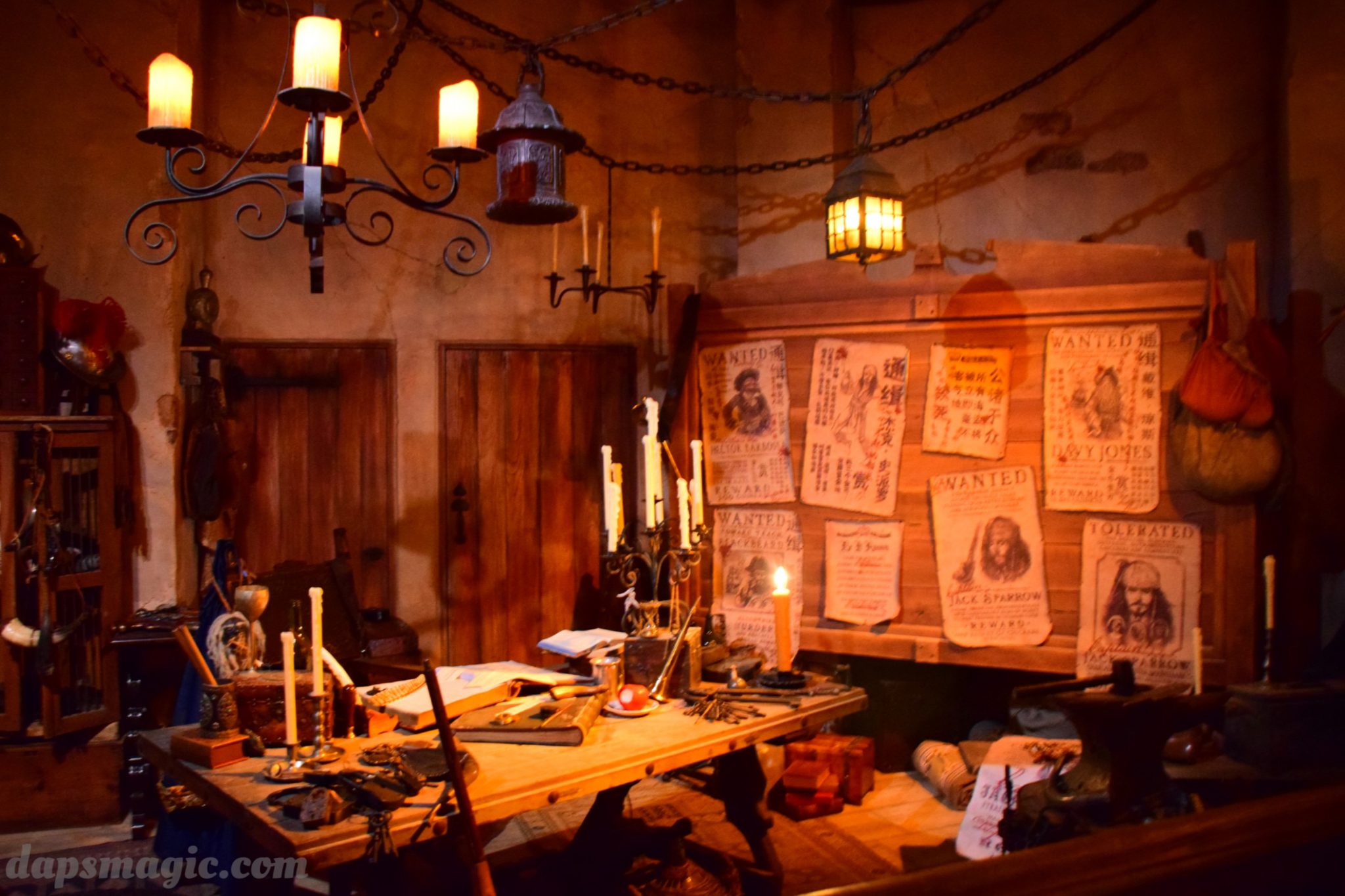 As you first come into the land from Gardens of Imagination, a small sign says “Abandon all hope ye who enter here.” It is quite the ominous sign, but sets the stage for the ups and downs of the pirate themed area. Several ships are seen docked, and they look ready to sail, or risky to be on the water. This land is about thrills on the high seas. There is little trust to be had among pirates, and that serves for great stories and great adventure. This is all about character and exploration. There are small references to the attraction, the movie, and even beyond these. The sign may say to abandon hope, but there is much more to it all than this.