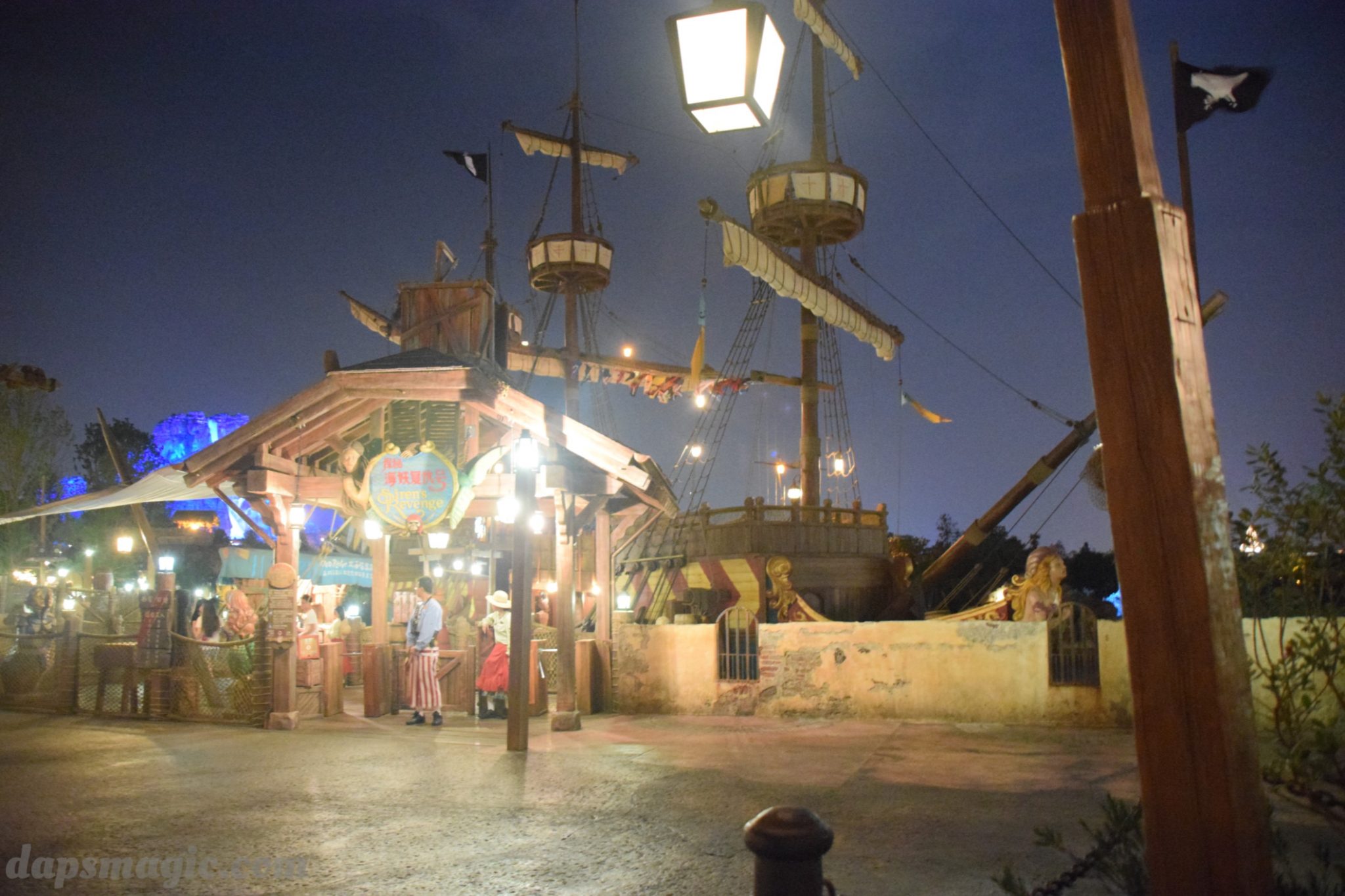 Continuing in the look at the newest Disney park we come to Treasure Cove. This Pirates of the Caribbean themed land demonstrates how popular the buccaneers are. The entire land is themed to the popular movies, not necessarily the attraction which first debuted at Disneyland in Anaheim. It’s the first time an attraction has inspired a movie that has now inspired an entire land.