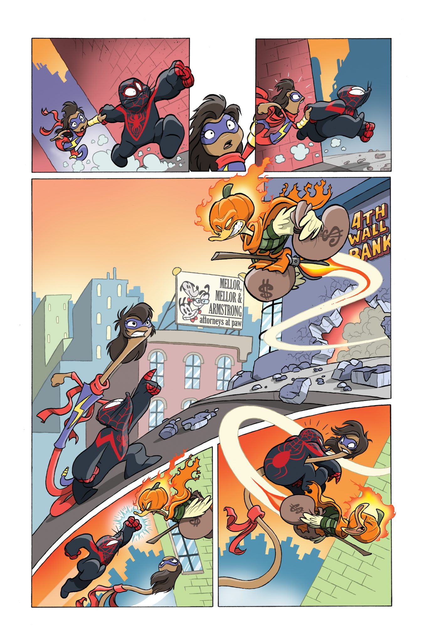 The saying goes that therapists become therapists because they are the ones who need the most help and that adage holds true for Greg Salinger, a.k.a. Foolkiller, “For Greg, he’s kind of an outsider in the normal person community, because he was a friggin’ vigilante and he’s actually a lunatic,” continued Bemis. “I think all of my work will probably have that theme…there’s always some kind of fish out of water-ish scenario, because that’s my neurotic thing.”