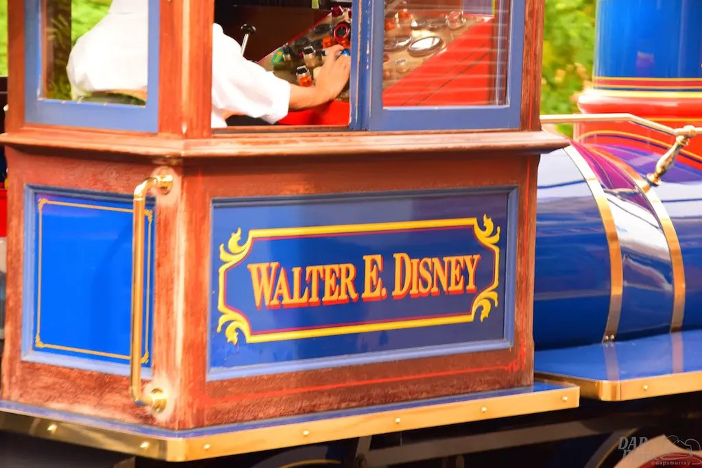 Blues and reds dominate the color palette of the train. The engines are named Walter E Disney, Roy O Disney, and Frank G Wells. They pull a few cars behind them which are named after cities in Southern California that have some Disney history, like Anaheim, Glendale, etc. The seats on these cars don’t face forward, and direct your view to the park and not any of the possibly visible outside areas.