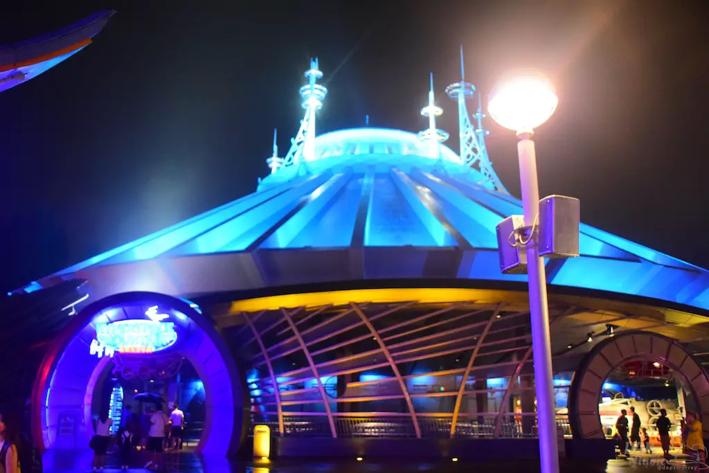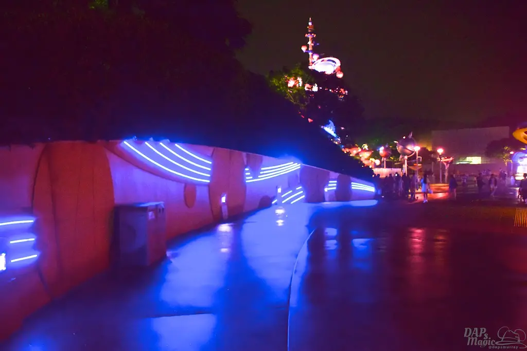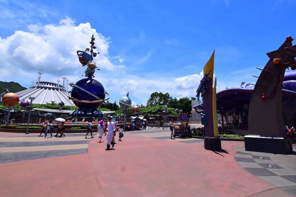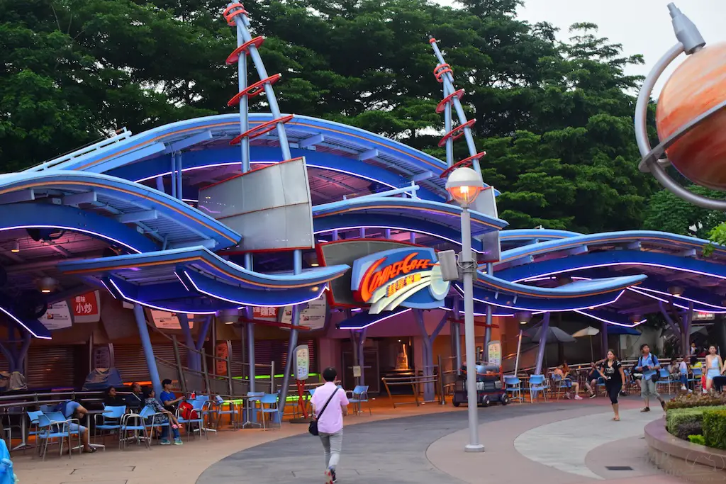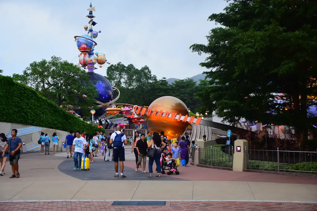 Each Tomorrowland across the globe has a different style and theme to it. Hong Kong Disneyland has probably the most cartoony look to it. To me, it seemed like an alien planet I’ve seen in animation. There are bright colors, lots of lights, and even flying saucers. It’s a fun land to