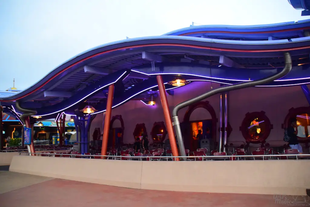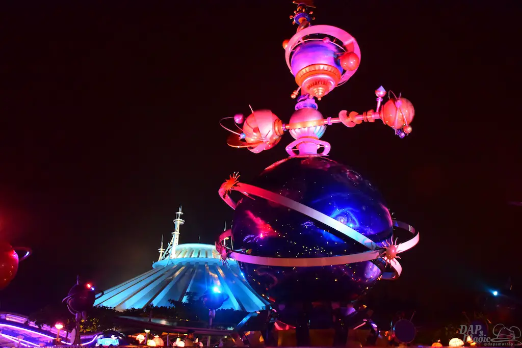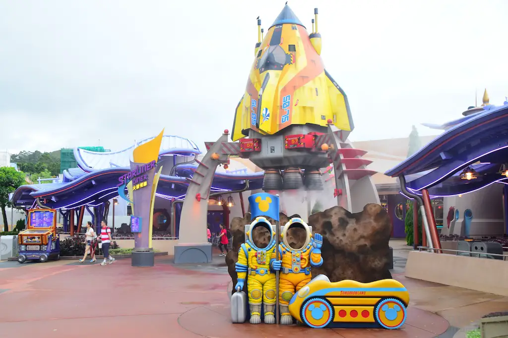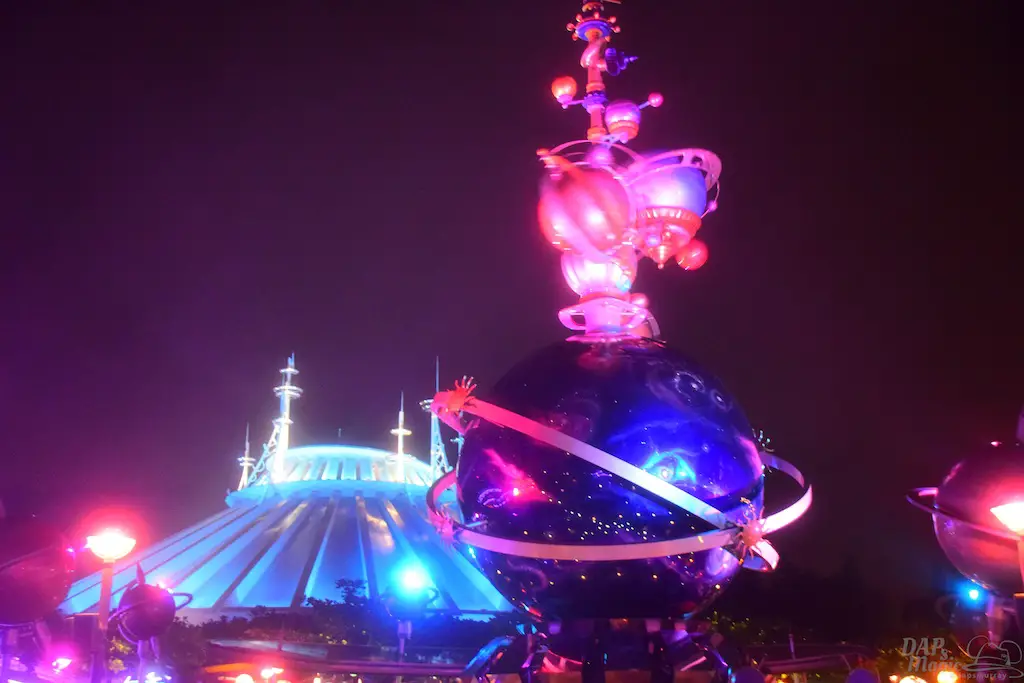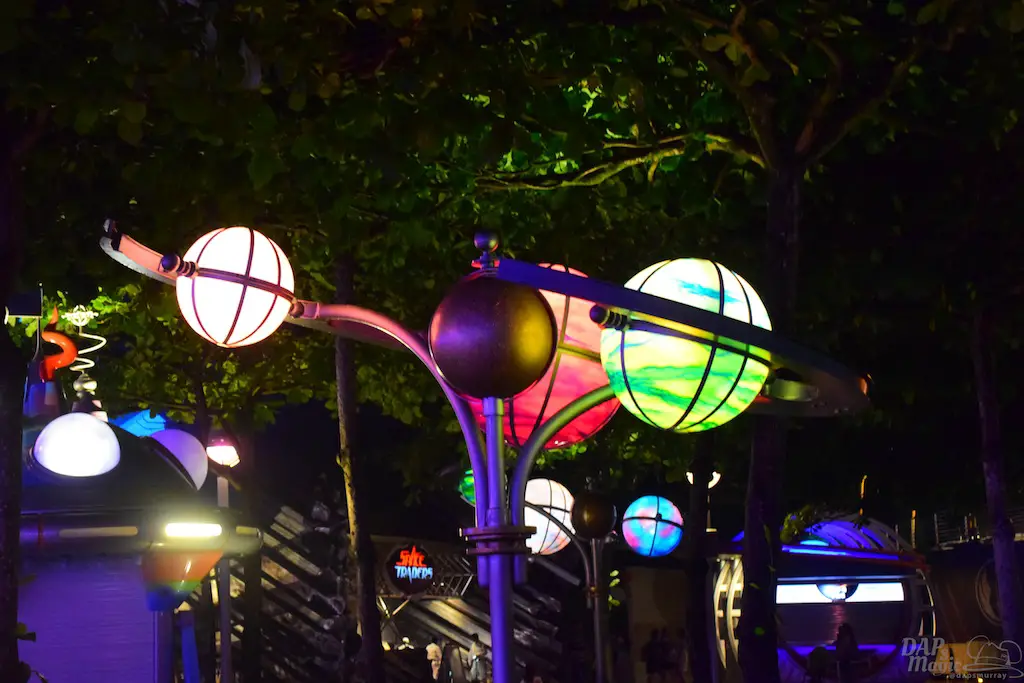 Each Tomorrowland across the globe has a different style and theme to it. Hong Kong Disneyland has probably the most cartoony look to it. To me, it seemed like an alien planet I’ve seen in animation. There are bright colors, lots of lights, and even flying saucers. It’s a fun land to