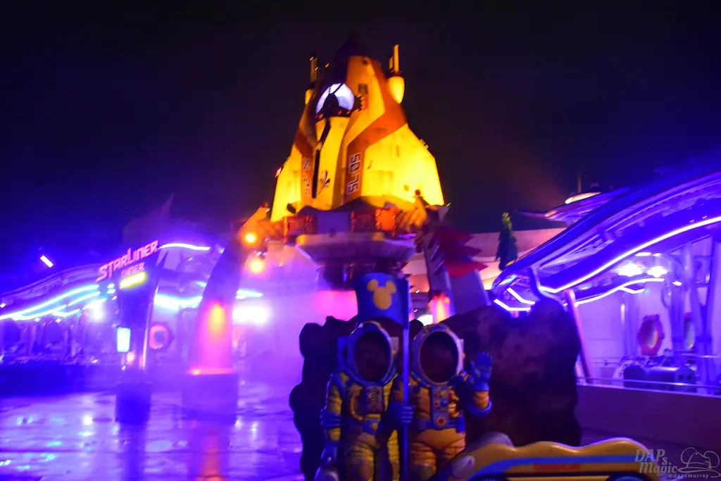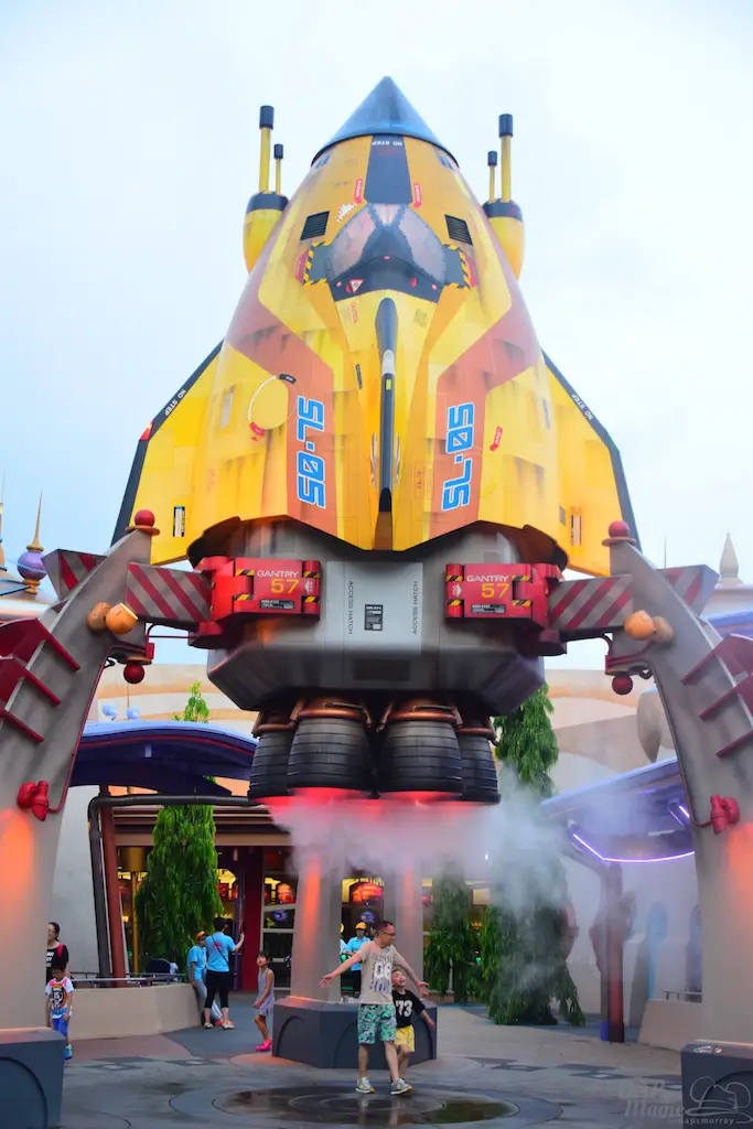 Two classic attractions that had a bit of a twist to them was Buzz Lightyear Astro Blasters and Flying Saucers. The Saucers were the typical spinner ride found in many of the Tomorrowlands around the world. But, usually the vehicles have a rocket shape to them. This version has the circular flying saucer shape (which, of course, makes the name). For passengers, there is the joystick to travel up and down, but a couple extra buttons makes it unique. These buttons trigger sounds to make this more of an intergalactic experience!