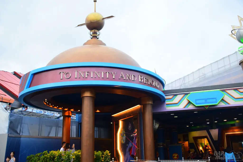 Past Fantasyland is Tomorrowland. The views here present itself with the tower that is Space Mountain and their Buzz Lightyear ride. During this visit, construction was happening for the new theater for Jedi Training Academy, and so there was a part that was under tarp.