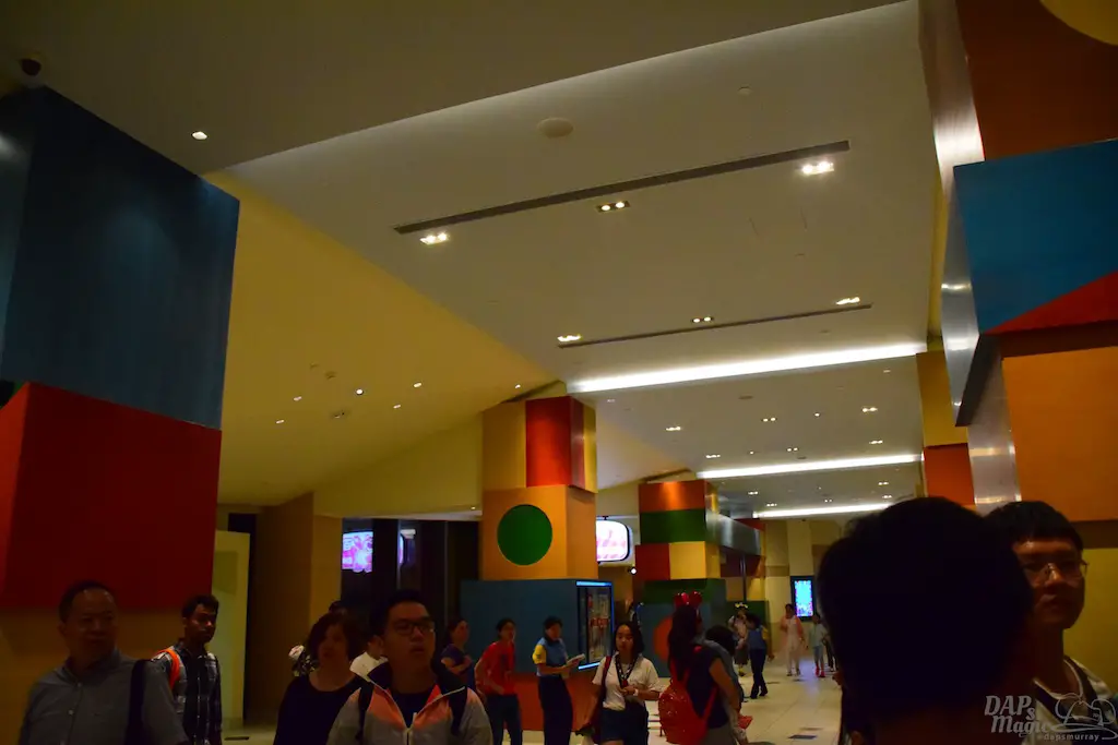 The way I got to the hotel was by Resort bus, which had a station nearby the Shanghai Disneyland entrance. It was night, so there was not a lot of view of the building, but it was breathtaking nonetheless. Out the window I could see the famous Pixar ball sitting at the bottom of the driveway. Beyond it was this grand, reflective building that showcased a simplistic design, but I knew it held some colorful details inside. I could see the shapes of the wings of the hotel. Having seen drawings of the building, I had been curious how an enormous hotel could just be laid out in two wings that circled back on itself…so to speak. It’s a figure eight design that looks a bit like an infinity symbol. This, of course, conjures the line “To infinity and beyond!” It was quite the purposeful layout, but still an architectural feat.