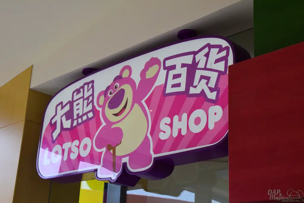 The only shop in the area was Lotso Shop. Not much theming after the bear, but it did contain some treasures with the Toy Story Hotel logo. In addition were some key items that were also found in the park. It was nice to see that some of the grand opening merch made its way here.