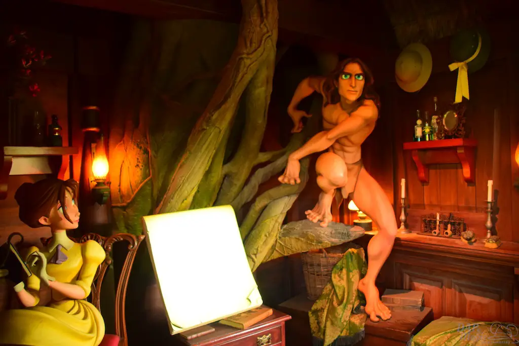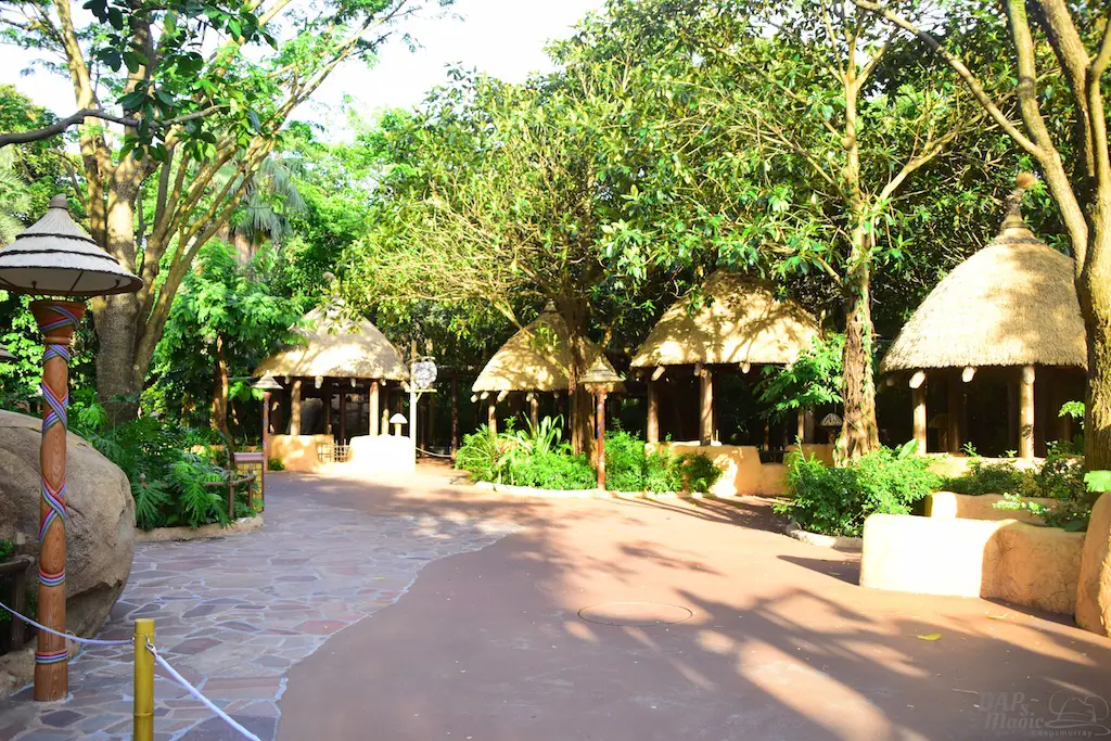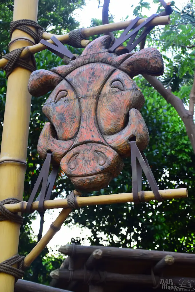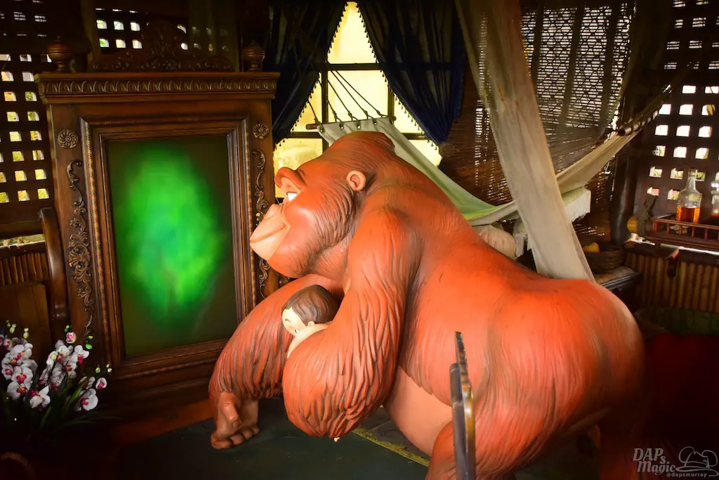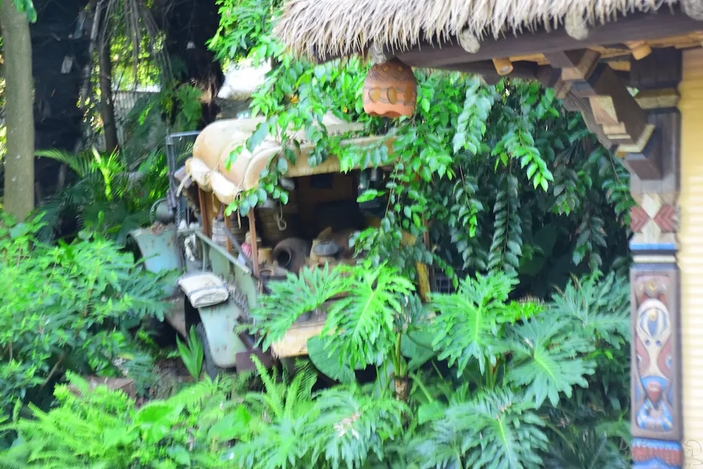 One of the big characteristics of this Adventureland is the large river that takes up most of the area. There are two attractions nestled in it: Jungle River Cruise and Tarzan’s Treehouse.