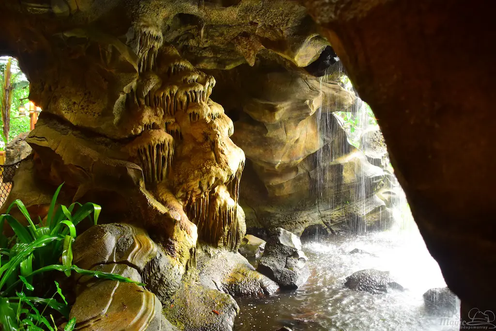 The attraction circles around the other big Adventureland attraction: Tarzan’s Treehouse. This island is only accessible by raft from the “mainland.” Once on the island there is quite a bit of exploration for a straightforward climb up the treehouse. If you’re familiar with the Disneyland version it’s quite similar. What’s nice is that a lot of the scenes seem extended and more detailed than the Anaheim attraction. The rooms are bigger, with more interaction available. Having a lot of area to traverse across makes this feel large and great to explore at. Beautiful cavern areas are at the bottom near the rafts. They house small waterfalls and lots of plant life. It’s a spectacular island to get lost on. From the top you can see down the Jungle River Cruise into the Elephant Bathing Pools.