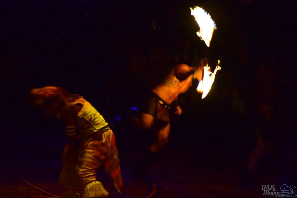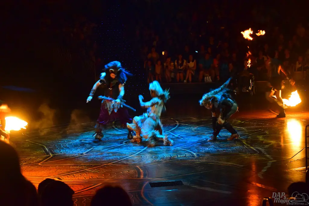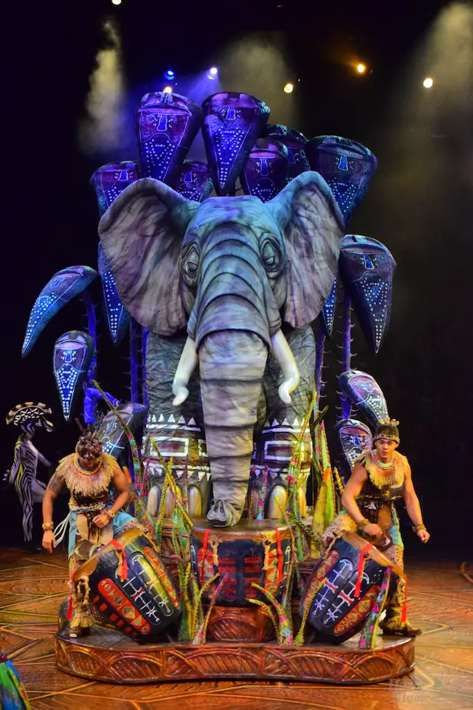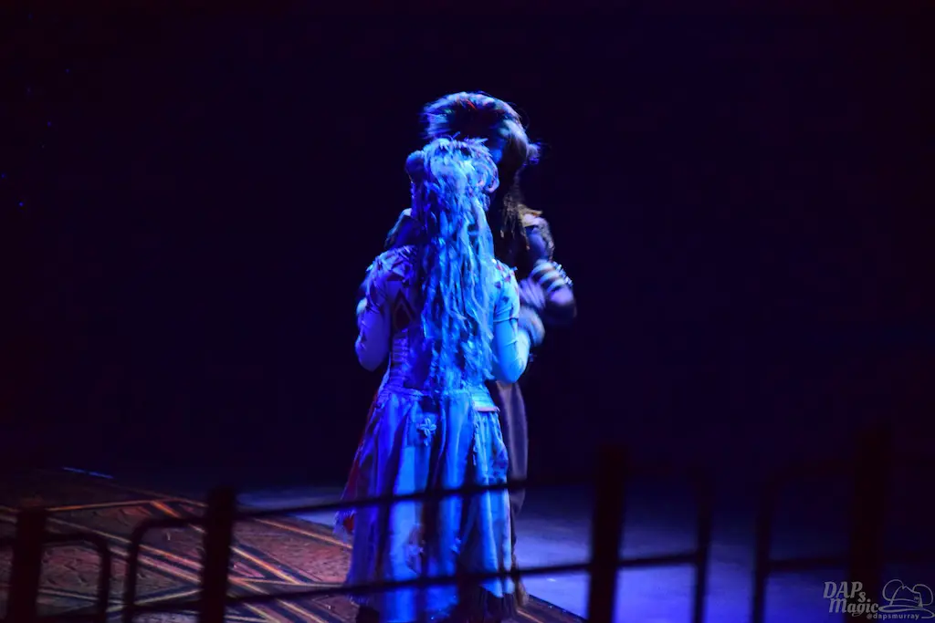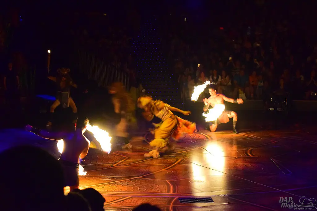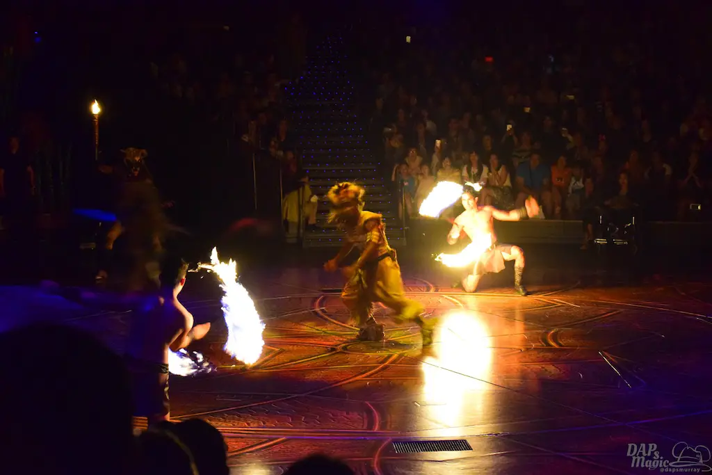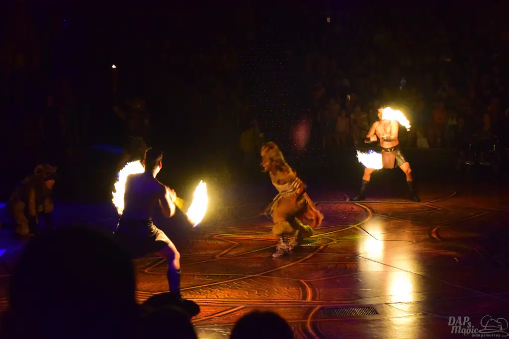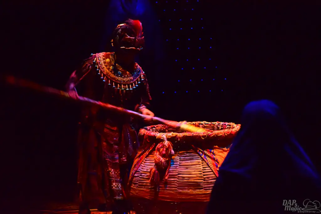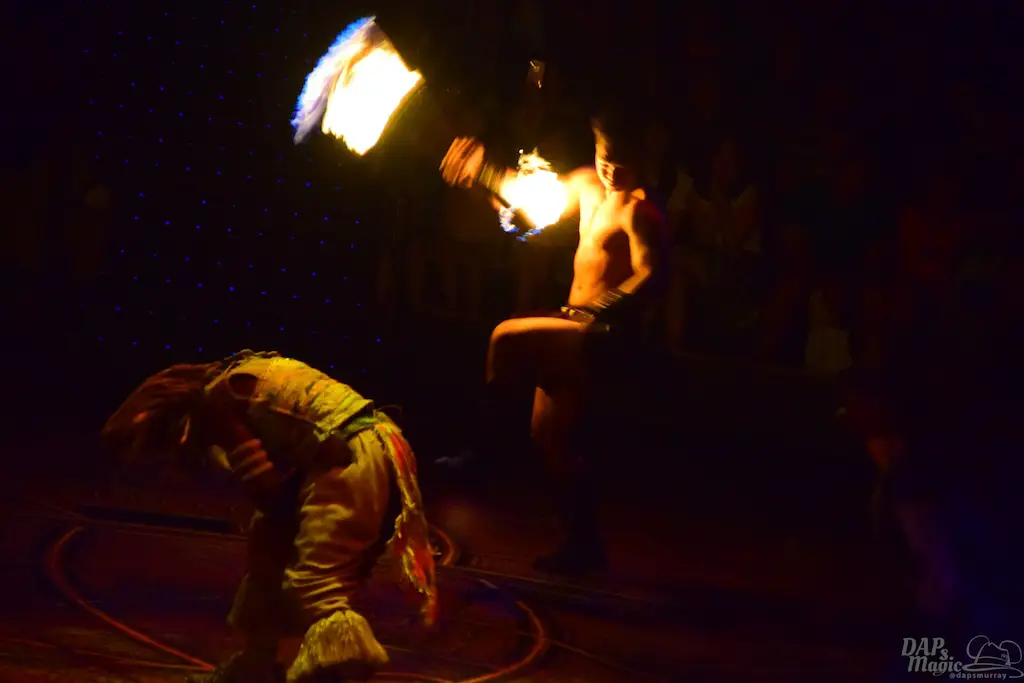 And, here’s where things differ. There’s a linear plot for the show, and some acts have the same performances as the Florida show, they are all about the telling of the movie plot. Musical numbers take place with the songs from the film. The main 4 performers are each cast as the main characters – Simba, Nala, Scar and Rafiki. Timon is present to fulfill his role.