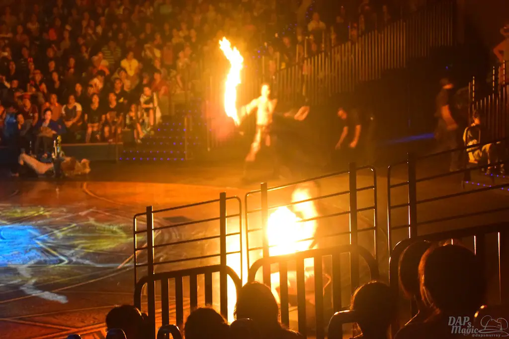 The show has all the exciting elements of the Animal Kingdom one. A high flying rope bird flies over the crowd. Fire dancers are displayed during Be Prepared. And, the great songs of the Lion King are better done in this show. The stage stood out for me, featuring great movement for a sometimes static floor. In all, it was a nice departure from the usual show I’ve seen before.
