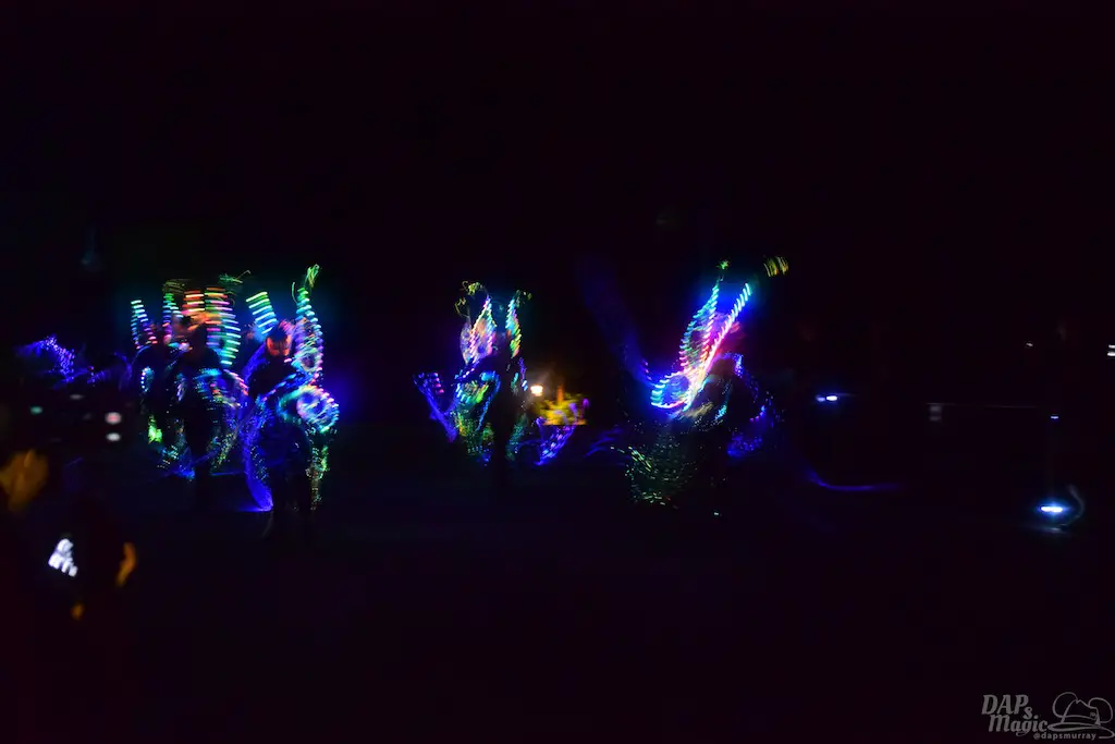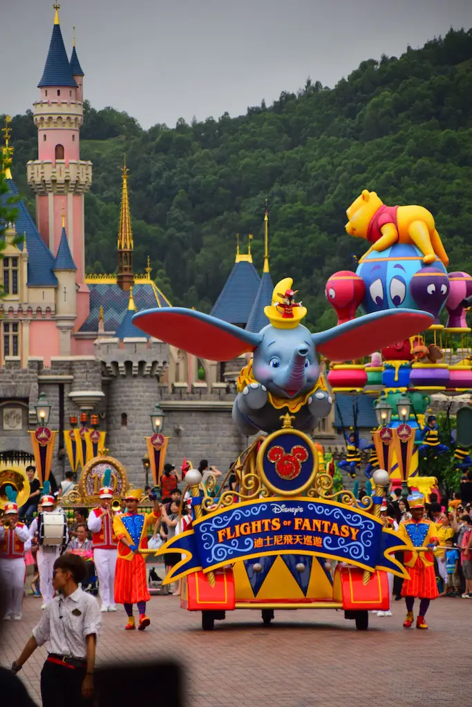 The whole parade has a show stop with special music. The performers that are on the ground pull out flags and banners to wave. Each float has a reveal with it where a part of it seems to take flight (hence the name) and elevates above the crowd more than it did.