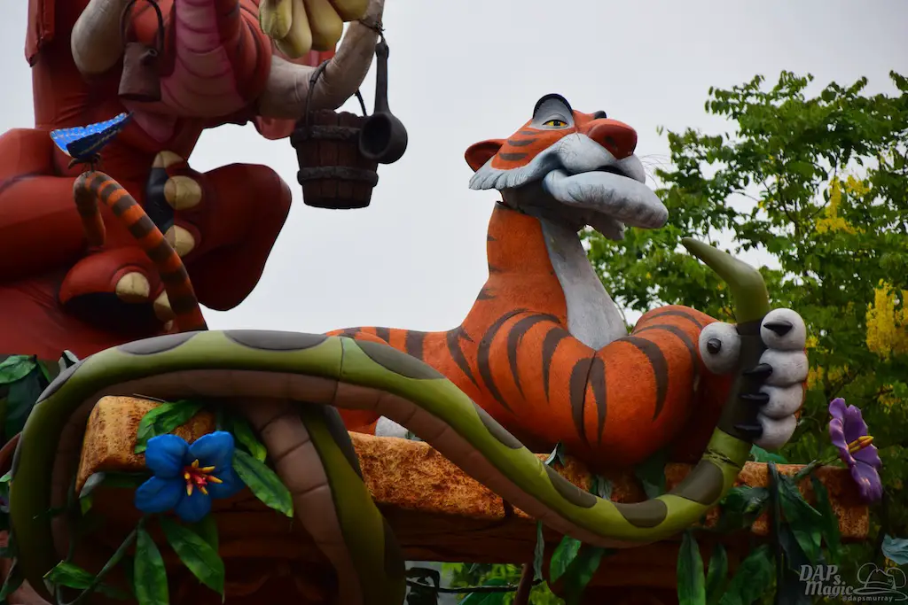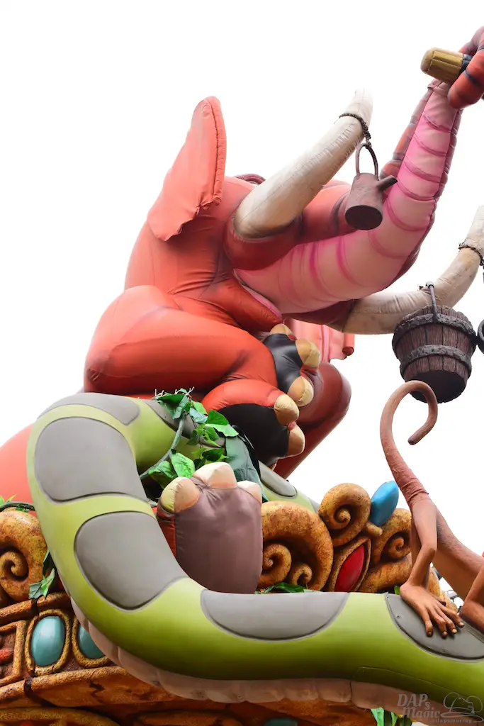 A jungle themed float is next. This float doesn’t represent any particular animal movie, but a few. Jungle Book takes up the front, while Tantor from Tarzan sits on the trees. Simba is behind him, and a few from the Lion King, like Timon and Zazu, are on the back. This float had the most animation out of all the ones in the parade. It was a lively jungle to behold.