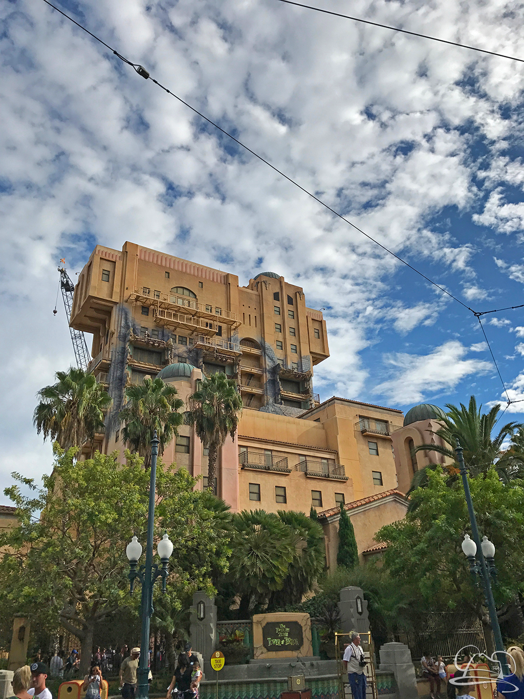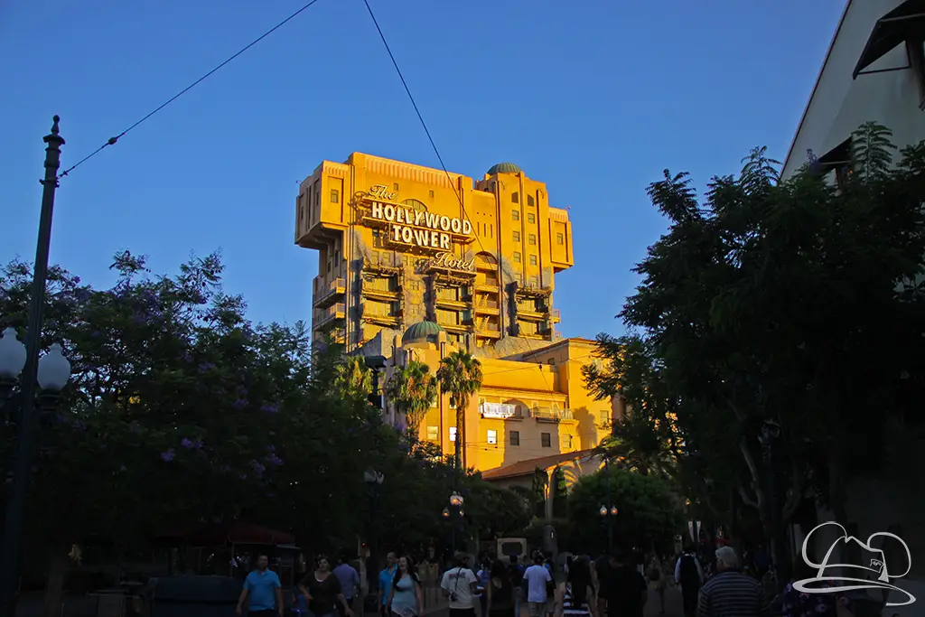 On Monday night the Disneyland Resort removed the signage to the Twilight Zone Tower of Terror in Disney California Adventure. On Monday a crane appeared behind the tower on Monday and by Tuesday the letters identifying the Tower of Terror as the Hollywood Tower Hotel had disappeared.