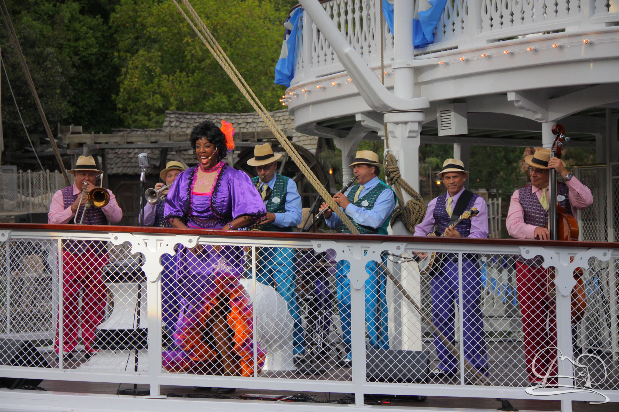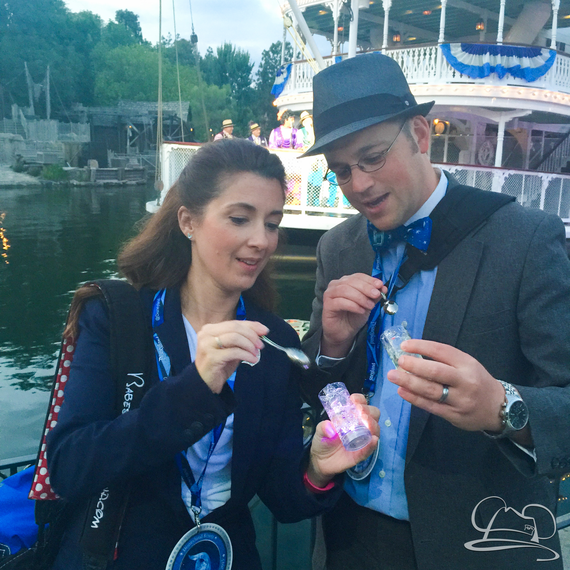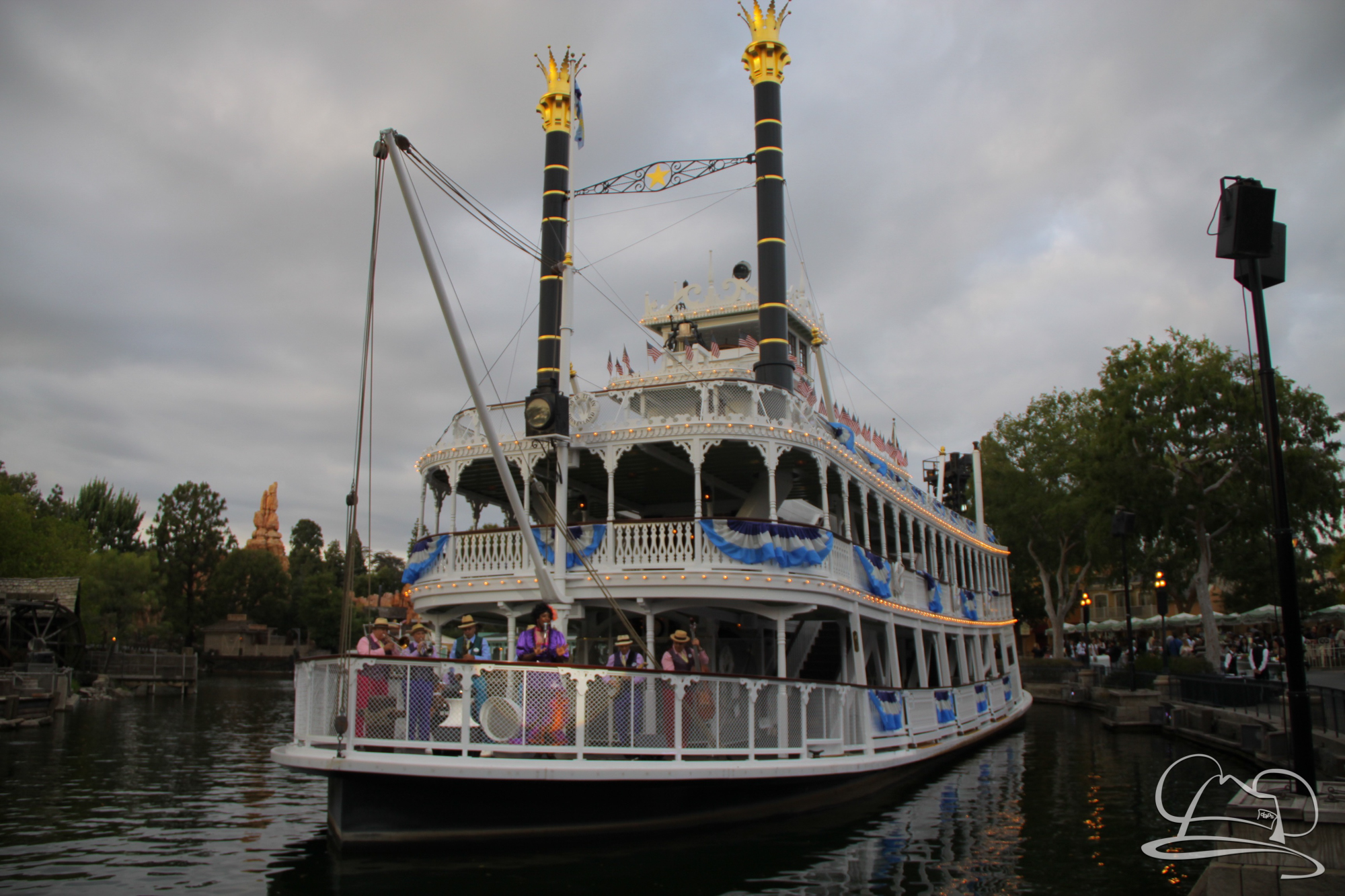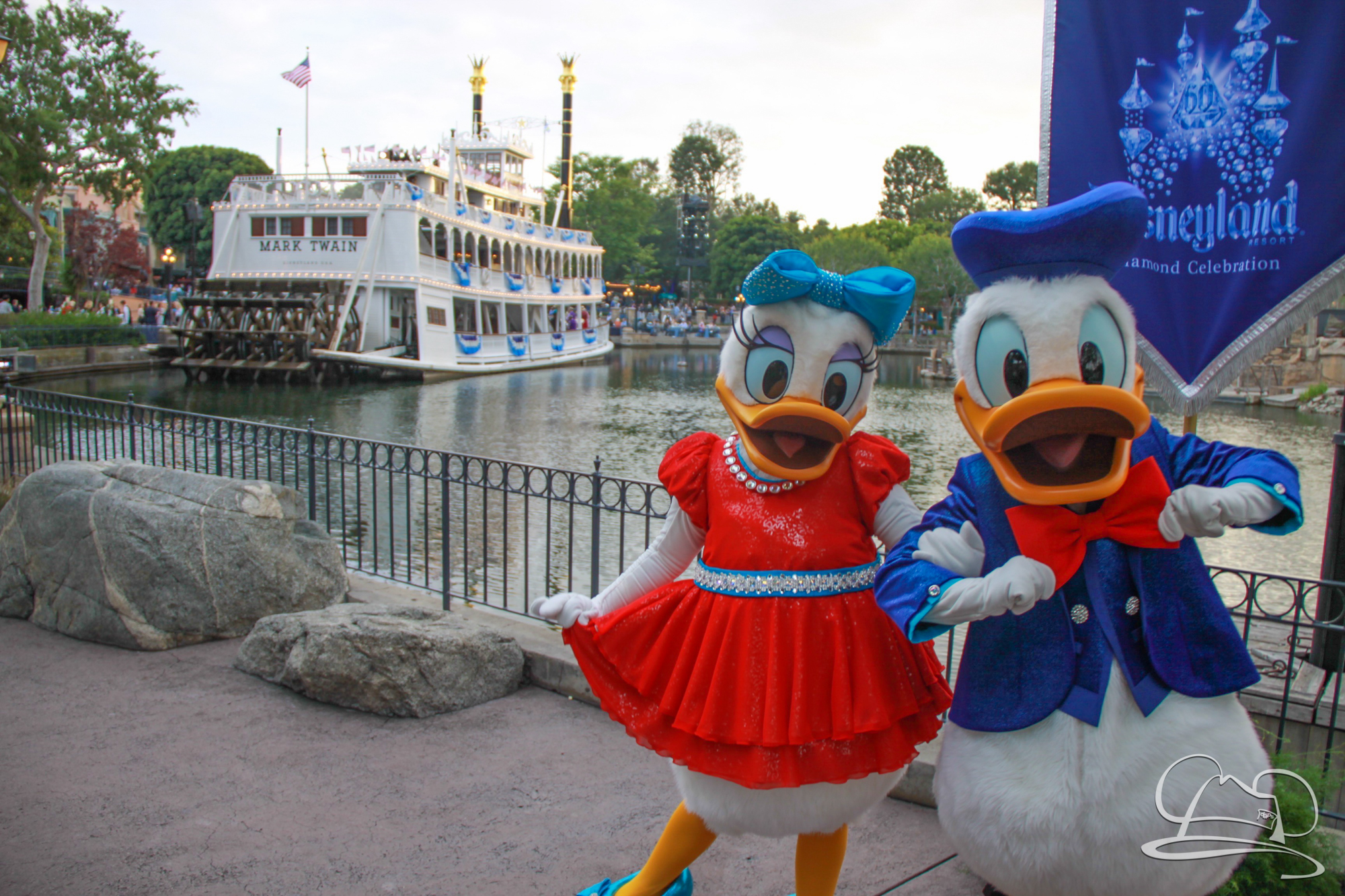 The following evening was spent in Disneyland for the unveiling of the Disney Paint the Night Parade and Disneyland Forever. The evening began with a fantastic meal along the Rivers of America where we also were able to meet Mickey and his friends in their brand new outfits for the Diamond Celebration. The Mark Twain floated out from us on the Rivers of America with live music on her bow as we ate our dinner. It was a beautiful evening and it would be very hard to ask for a more ideal setting.