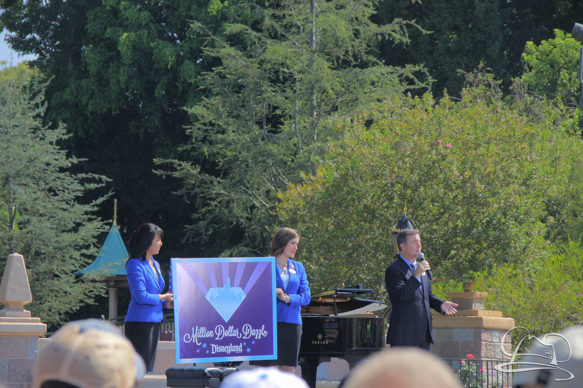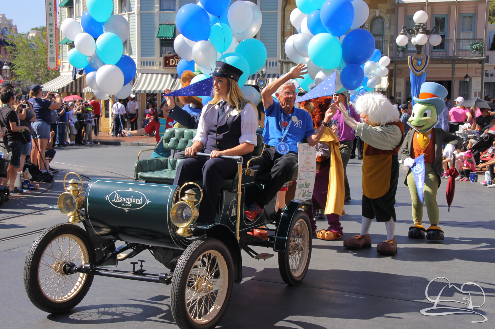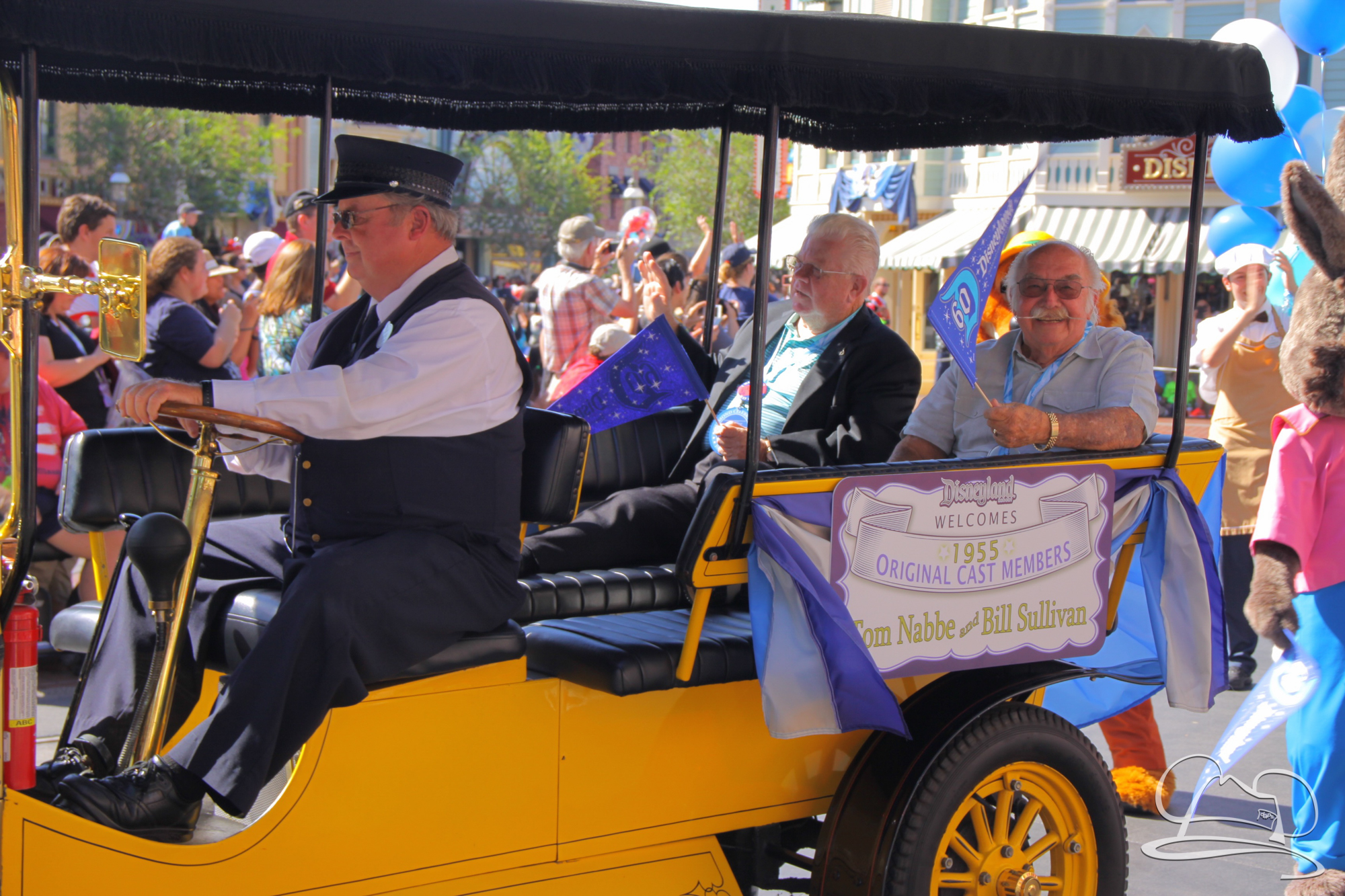 There were two very special festivities that occurred on Disneyland’s official 60th birthday. The first was a ceremony that took place in front of Sleeping Beauty Castle. Hosted by Disneyland President Michael Colglazier the ceremony recognized both Disney family members and also Disney legends who were in attendance. The Million Dollar Dazzle was also announced with the first gift going to the Girl Scouts (it should be noted that it ended being a multi Million Dollar Dazzle). Then Ashley Brown and Richard Sherman provided a beautiful rendition of Walt Disney’s favorite song, Feed the Birds. The ceremony ended with everyone singing Happy Birthday to Disneyland as Disney characters joined in front of Sleeping Beauty Castle. It was a lovely ceremony. Hearing Feed the Birds performed by Ashley Brown and Richard Sherman will always be a beautiful moment that sticks out from that day.