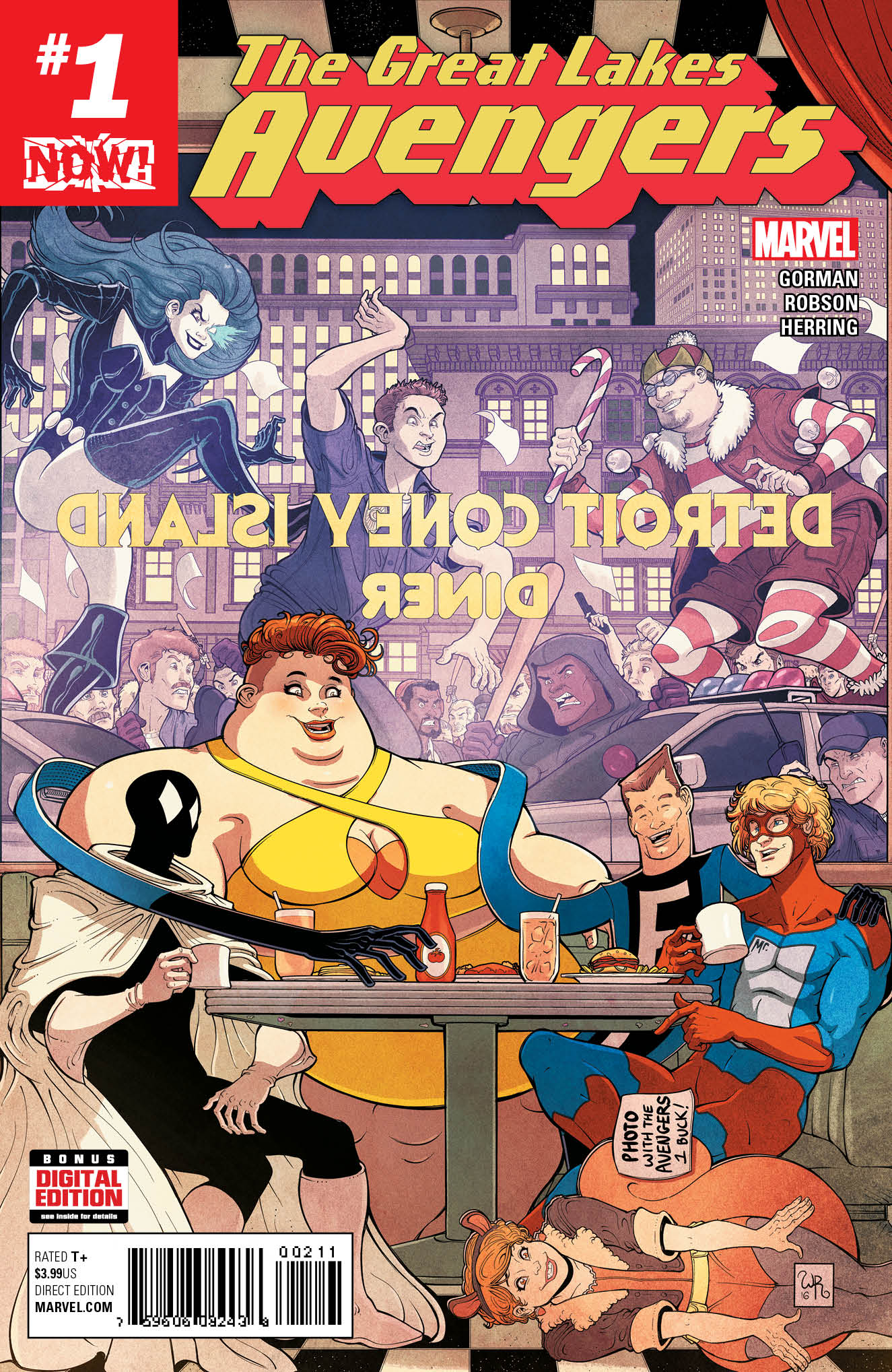 New York, NY—September 13th, 2016 —Because the Midwest needs Avenging too! Today, Marvel is pleased to present your first look inside GREAT LAKES AVENGERS #1 – a brand-new series launching as part of Marvel NOW!. Marvel newcomers Zac Gorman (Rick & Morty) and Will Robson (Star–Lord) look to put their stamp on the House of Ideas this October with a new series starring the world’s least favorite super team! But when the GLA gets reinstated as permanent members of the Avengers, it’s time for them to turn it all around and restore themselves to their former super hero glory. Their mission? Cleaning up the mean streets of Detroit! That’s right – Mr. Immortal, Flatman, Doorman, Big Bertha and newcomer Good Boy are leading the charge to make Detroit a better place. But can they answer the call? Or will the Motor City prove too much for the GLA? Find out next month when GREAT LAKES AVENGERS #1 comes to comic shops and digital devices on October 12th!