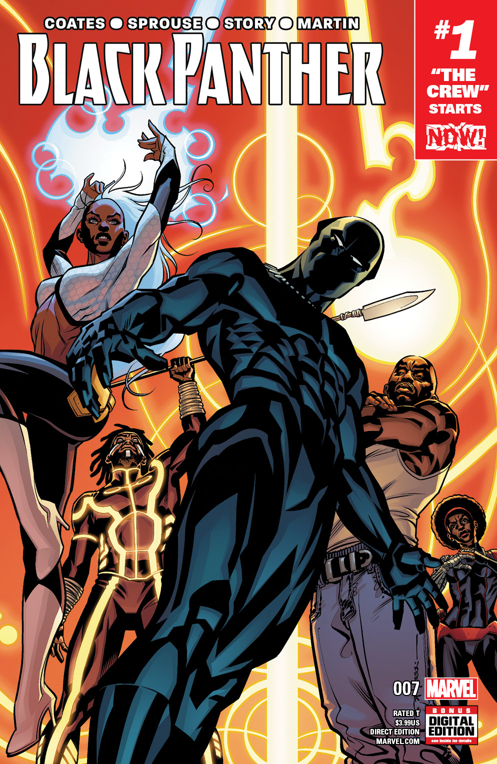 Within Marvel Comics’ Black Panther, written by The Atlantic national correspondent and National Book Award winner, Ta-Nehisi Coates, Black Panther confronts a dramatic upheaval in Wakanda that will make leading the African nation tougher than ever before! With no one left to trust, T’Challa leans the only people he can trust: Luke Cage, Misty Knight, and Storm. But Wakanda may be too far gone for this all-new, all different CREW.