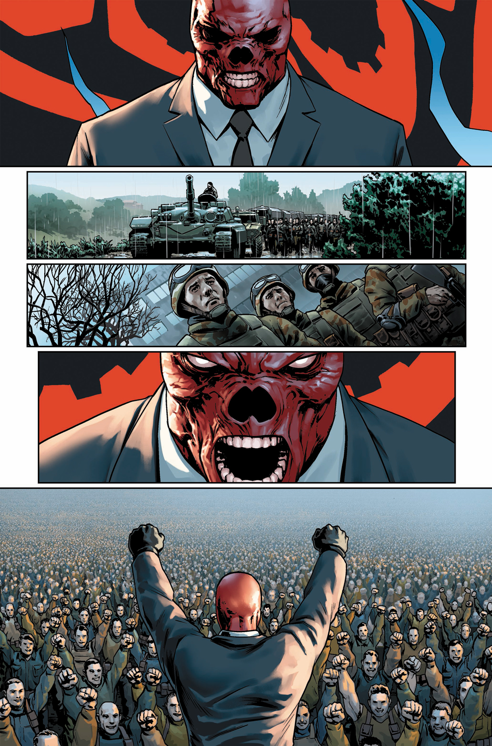 New York, NY—October 17th, 2016 — The next chapter in the sensational saga of Captain America begins here! Today, Marvel is pleased to present your first look at CAPTAIN AMERICA: STEVE ROGERS #7 – the first installment in the next exciting story arc “Hail Hydra”! Blockbuster creators Nick Spencer and Jesus Saiz re-unite once more as Hydra’s tentacles slowly tighten around the Marvel Universe! Civil War II may have ended, but Steve Rogers and his machinations are just beginning! S.H.I.E.L.D is coming apart at the seams as the Red Skull marches across Europe, with an army at his back. Steve Rogers can only smile – everything is going according to plan. Be there for the start of a new jumping on point as Hydra comes to Marvel NOW! in CAPTAIN AMERICA: STEVE ROGERS #7 – on-sale November 9th!