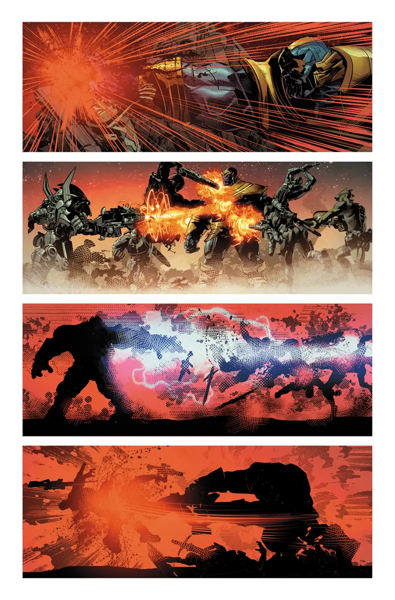 New York, NY—October 20th, 2016 — He is the greatest evil the universe has ever known. An unstoppable force whose name is whispered in hushed tones across the galaxy. Feared from one end of the cosmos to the other, he’s returned to take back what is rightfully his! Today, Marvel is pleased to present your first look inside THANOS #1 – the new ongoing series from all-star creators Jeff Lemire (Moon Knight, Death of X) and Mike Deodato (Avengers, Invincible Iron Man)! Venture into the dark depths of one of Marvel’s most vile villains as he enacts vengeance on all who would stand in his way. In his absence, Thanos’ grip on the cosmos has loosened. As he returns to the stars to terrorize the galaxy once more, reborn and reinvigorated – are there any that can stop him? Many will try, including members of his own family – Thane, Starfox and many others. Will they succeed where others have failed?