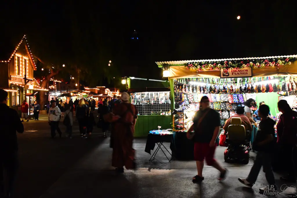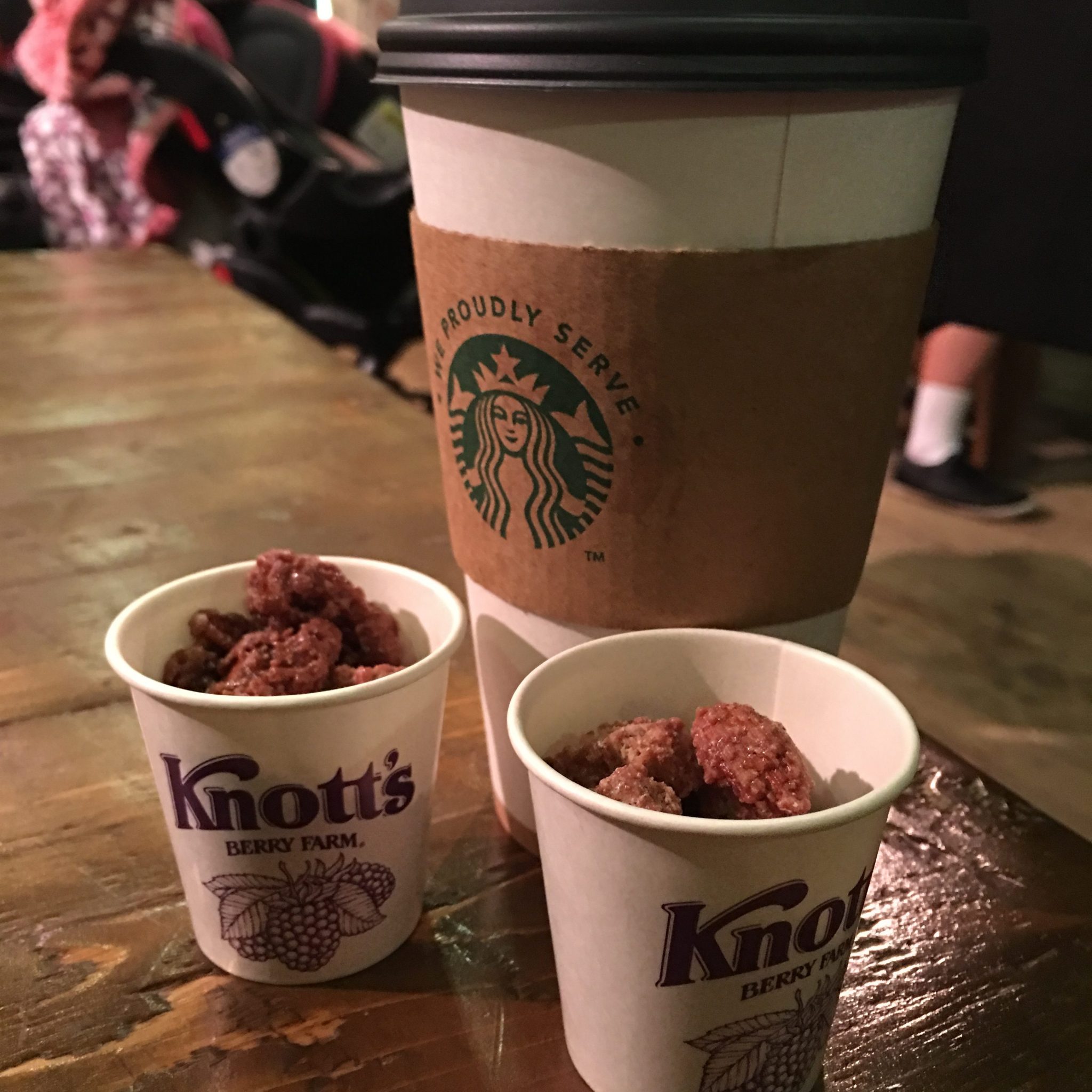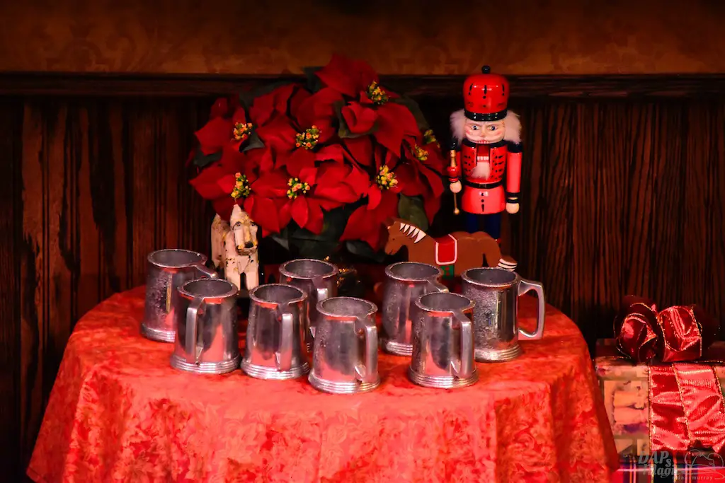 Over in the Wilderness Dance Hall are some delicious treats and an opportunity to get a photo with Santa. Because of that, it’s transformed into Santa’s Christmas Cabin. It’s a great location to take a breather from the rest of the park. Among the great food items are some great pastries and drinks. The boysenberry tart was one of the highlights for me. The Snoopy Santa cookie is always delicious. Roasted, candied nuts are great sweet and salty snacks to enjoy.