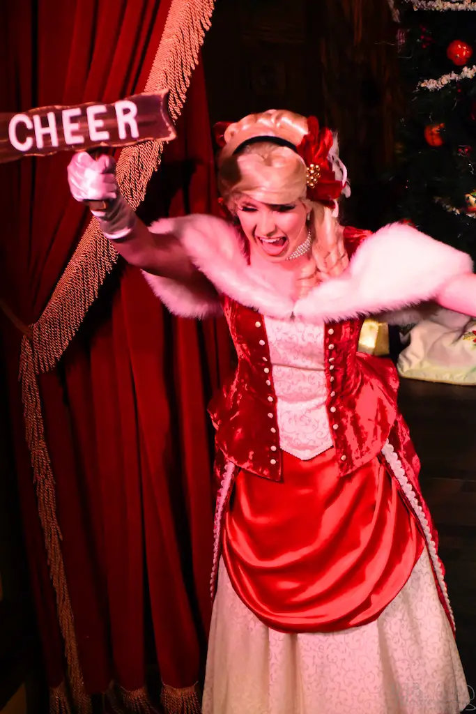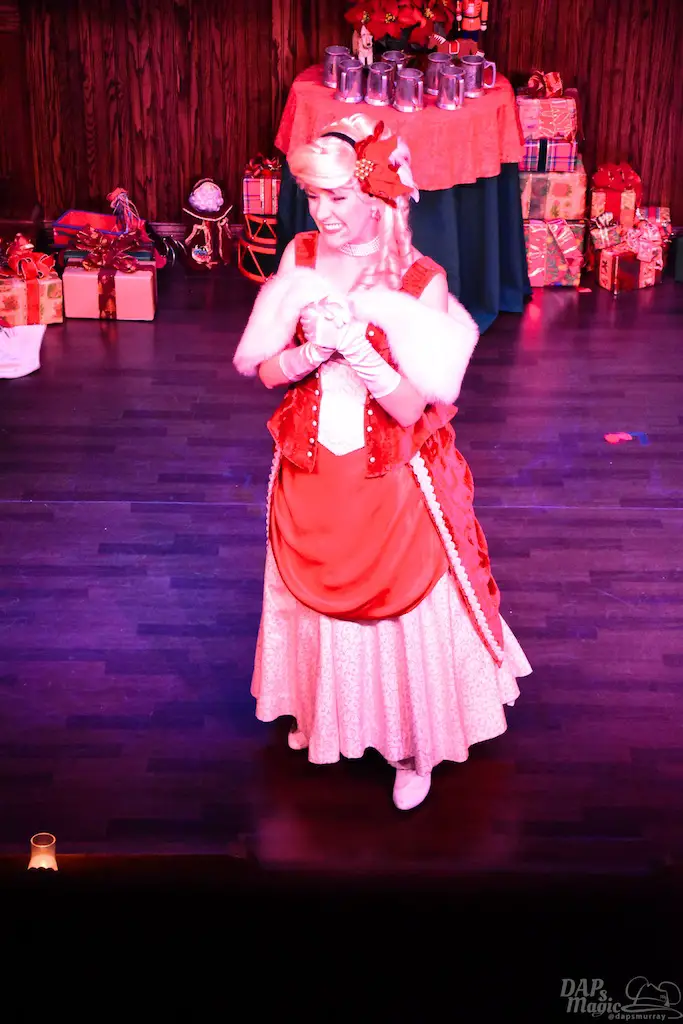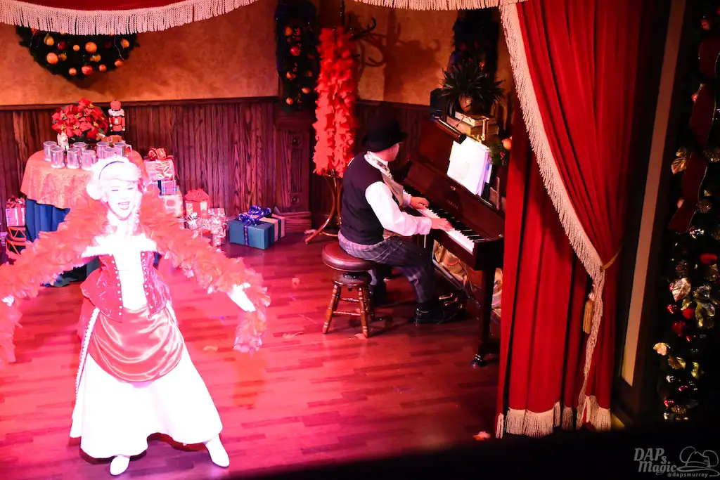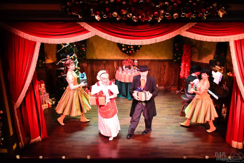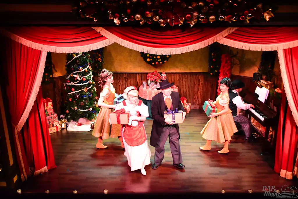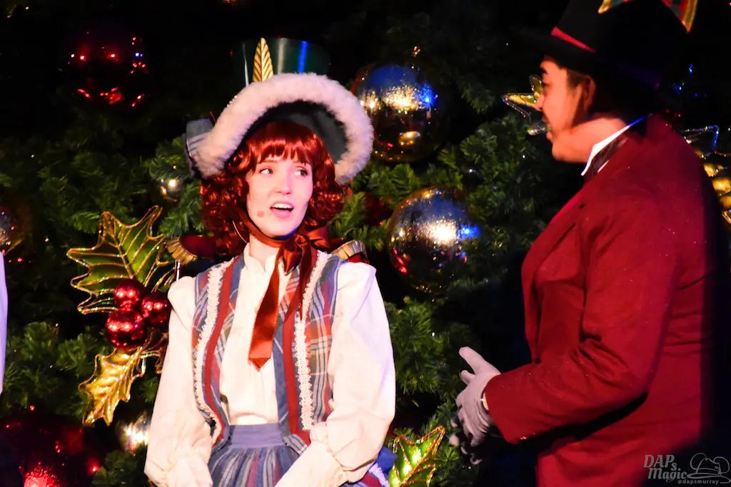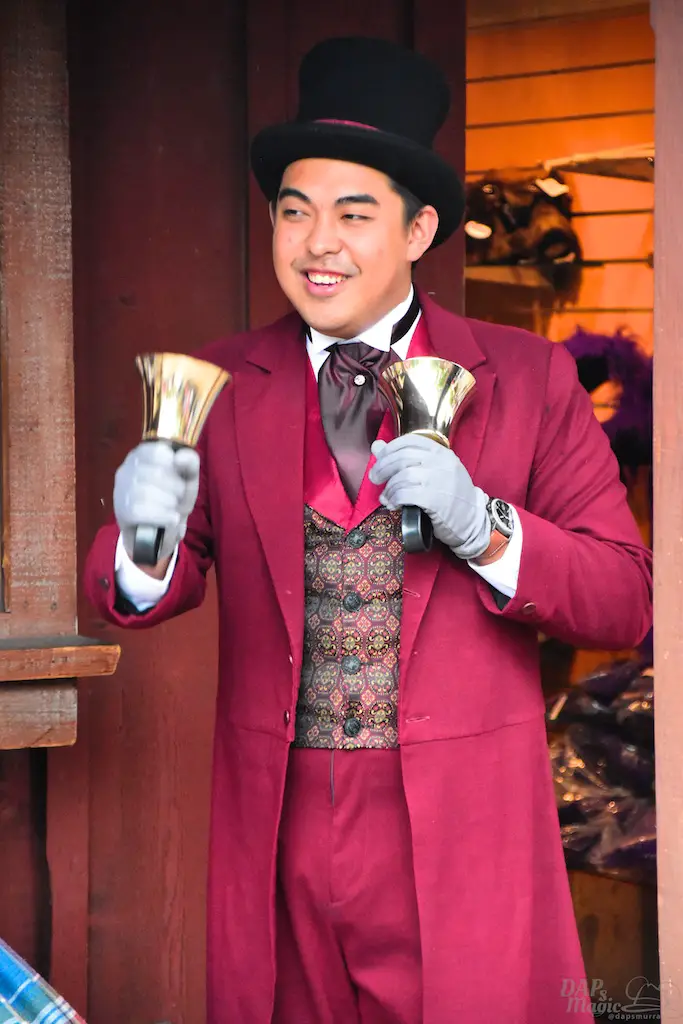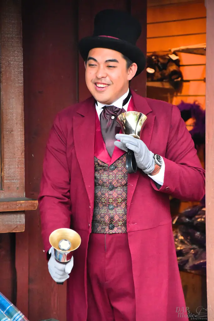 Calico Carolers sing tunes of the yuletide and ring bells. They appear throughout the streets of Ghost Town gathering guests to listen in and enjoy.