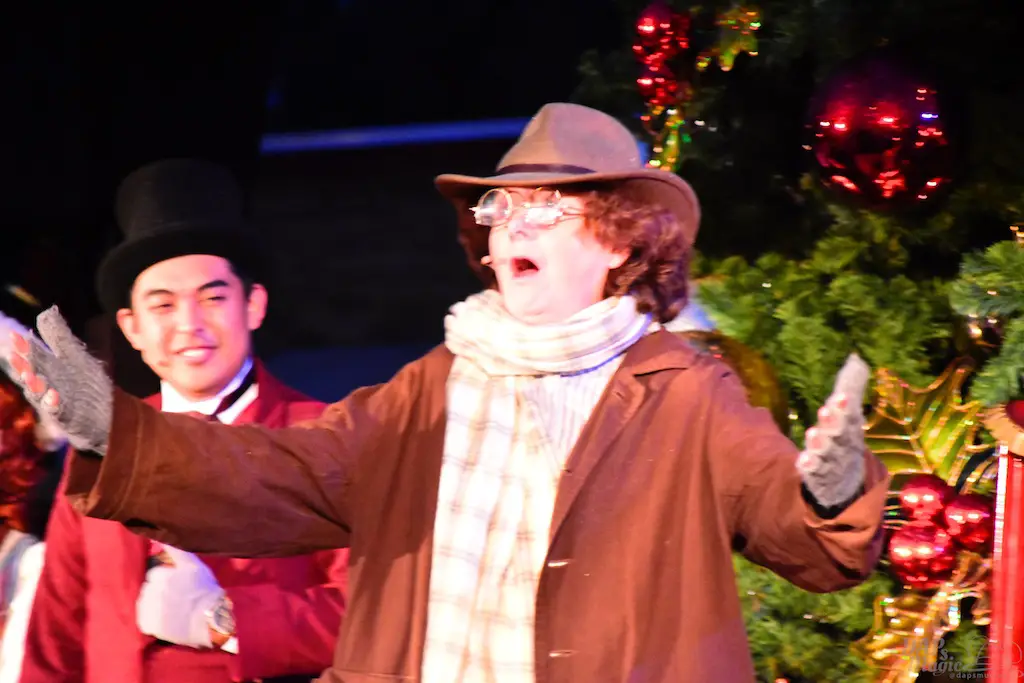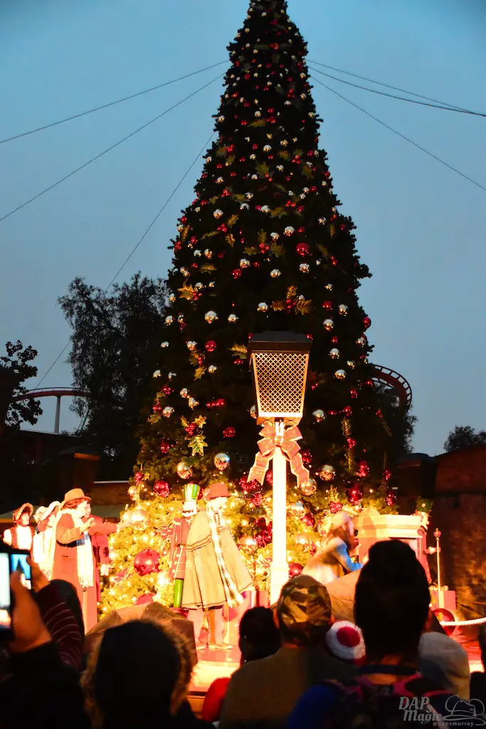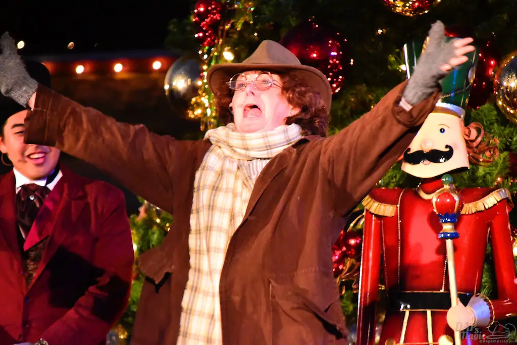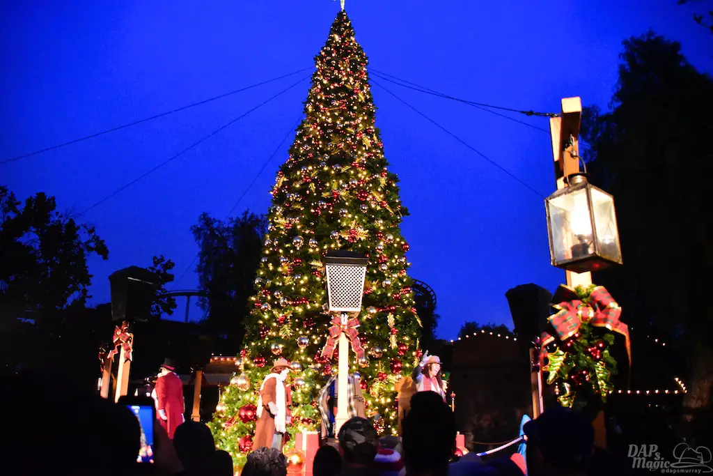 When the sun has set, Ghost Town brings its residents and guests together to take part in a Christmas tree lighting ceremony in Calico Park. The Carolers kick off the show with some crooning. The rest get the crowd excited as a new contraption is rigged and switched on for the tall tree to be lit.