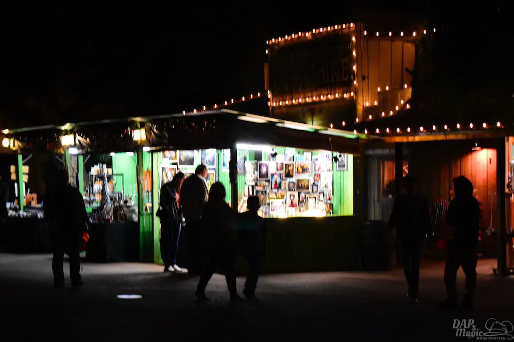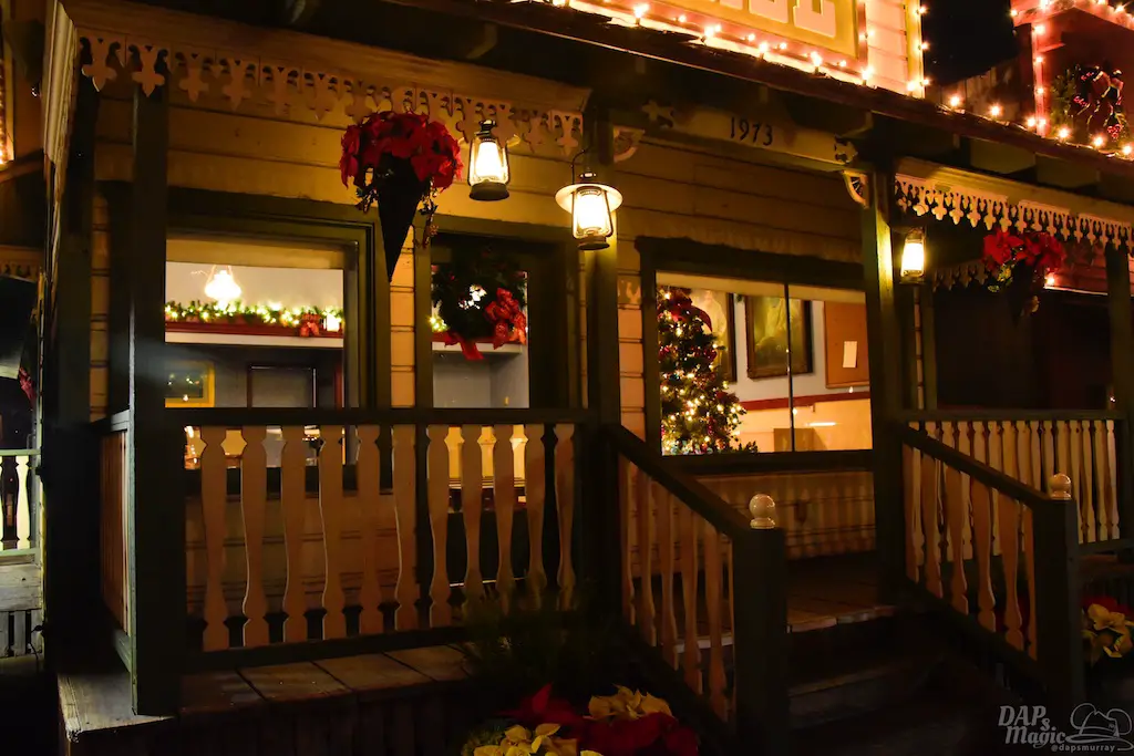 At night, lights illuminate a wonderful snowy wonderland on the streets of Calico. It tops off a great Christmas atmosphere.