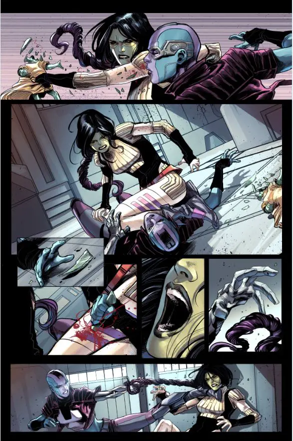 New York, NY—November 18th, 2016 — Before the Guardians, there was only…Gamora! Today, Marvel is pleased to present your first look inside the highly anticipated GAMORA #1, coming to comic shops and digital devices everywhere on December 21st! From Nicole Perlman – co-screenwriter of Marvel’s Guardians of the Galaxy and blockbuster artist Marco Checchetto (Star Wars: Shattered Empire) comes a tale of blood and vengeance. Once upon a time she was Thanos’ heartless pet assassin and favorite daughter. Today she is the backbone of the Guardians of the Galaxy, putting her life on the line to defend the innocent. What was it that transformed her from being used as a tool of her oppressor to a champion of the powerless? Embark on a journey of revenge, redemption and retribution, and witness how she earned her reputation as the deadliest woman in the galaxy. Don’t miss GAMORA #1 – coming to comic shops and digital devices everywhere on December 21st!